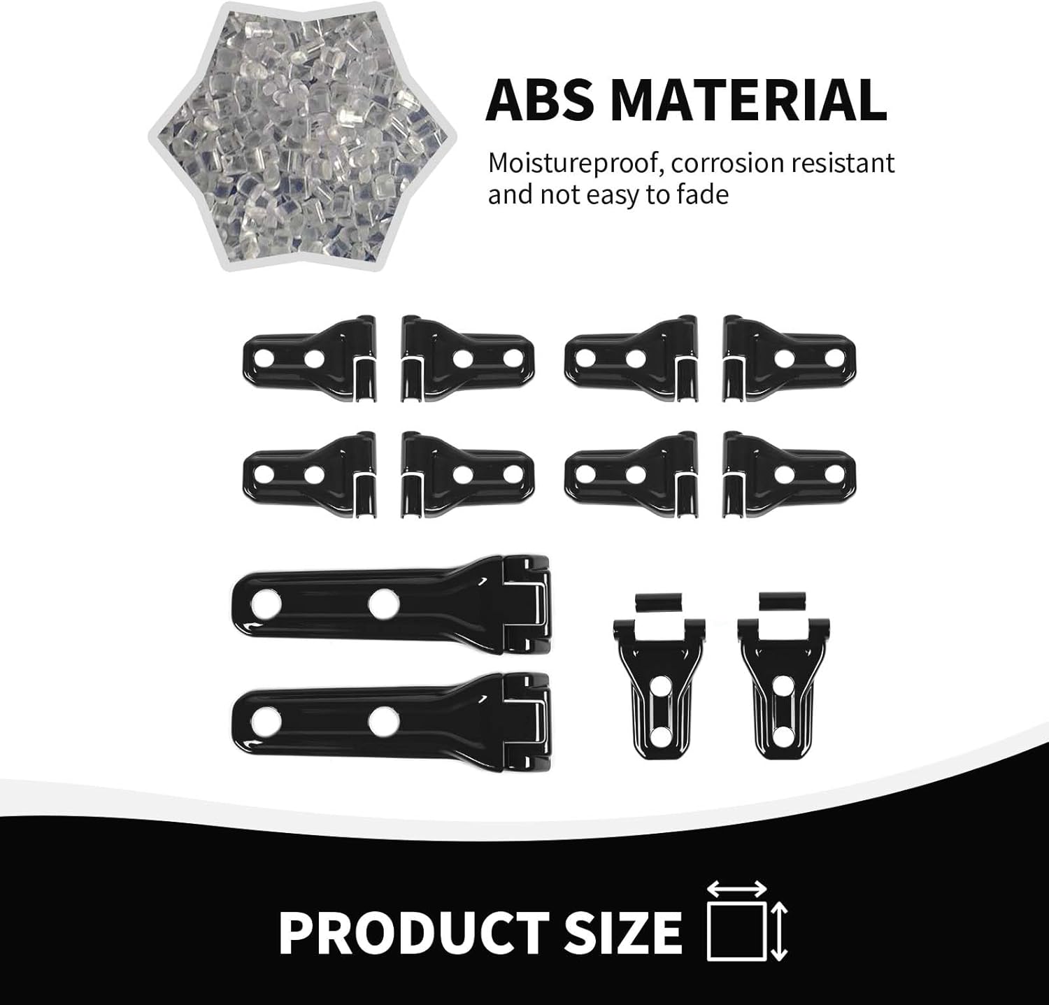 Model: -Compatible with 2018 2019 2020 2021 2022 2023 Jeep Wrangler JL JLU 4-Door. -Not for 2-door! Product Features: -Change the monotonous exterior to add style and coolness. -Cheap and fast upgrade method, protect your expensive car with nothing to lose! -Covers scratches and stains. Product Information: -Color: Black -Material: ABS Package Includes: -for Jeep JL Door Hinge Cover*8 -for Jeep JL Engine Hood Hinge Cover*2 -for Jeep JL Tailgate Hinge Cover*2 About Installation: 1. Using alcohol, clean the surface and keep it dry without water and dust. 2. It is best to heating the tape with hair dryer or baking gun, then tear off the double-sided tape behind it and stick it to the corresponding position. 3. Press firmly for a minute or so to better secure the lid in place. High-quality After-sales Service -RAZPOY team pays great attention to customer experience, if you have any questions about JL 12pcs exterior trim kit, please feel free to contact us, we will try our best to solve it for you and provide the best after-sales service.