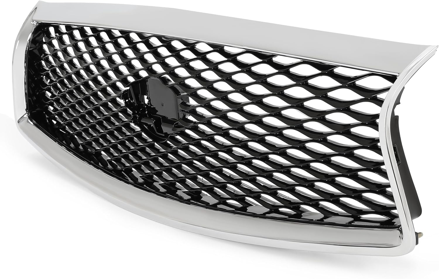 Grill Fitment: The black silvery grille compatible with 2014 2015 2016 2017 Infiniti Q50 All Model ABS Material: This grille headlight bezel is made of durable ABS plastic, which can effectively resist scratches during driving Grill Appeal: The silver and black grille with a painted & chrome surface provides a fashionable visual enjoyment and effective protection for the vehicle, promoting the circulation of air inside the vehicle, a high degree of compatibility Package List: After receiving the package, open it and check if the quantity is correct. The package contains one grille, and does not include accessories and a manual Installation process: The installation method is simple and convenient, and can be directly done using screws without additional modifications