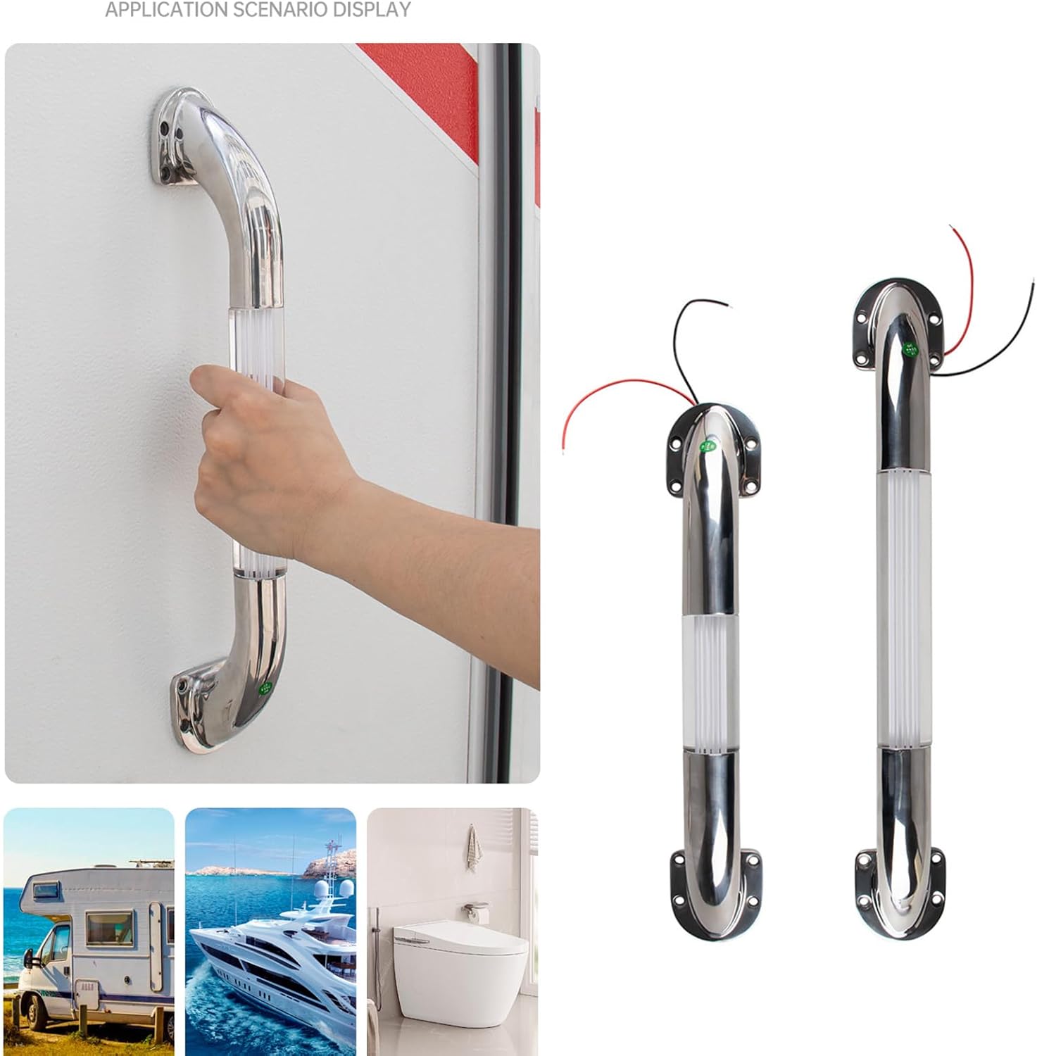Grab Handle,Stainless Steel Automobile Entry Door Assist Handle With Blue LED Light For Campers, TrailerFeatures:Add a touch of sophistication to your vehicle entrance with this LED grab handle. The soft and bright lighting creates enchanting effect, making it a standouts feature.Crafted from metal materials, this handle is a comfortable grip, providing both and convenience.Perfect for individuals who appreciate attention to detail, this LED crystal handle combines functionality with a visually design. Perfect for those looking to personalize their vehicle interior.Whether you're driving at night or hosting a gathering, the illuminated effect of this handle adds a unique and eye catching It provide amples light, enhancing both and atmosphere.Upgraded your vehicle with this practical LED handle. Its smooth design and good make it a must have accessory for any discerning driver.Specifications:Stainless Steel,AcrylicLength:Approx.420mm/16.55'',335mm/13.19''Voltage:12VLight Color:BluePackage Includes:1x Grab HandleNote:Please allow 1mm errors due to manual measurement. Due to the difference between different monitors, the picture may not reflect the actual color of the item.