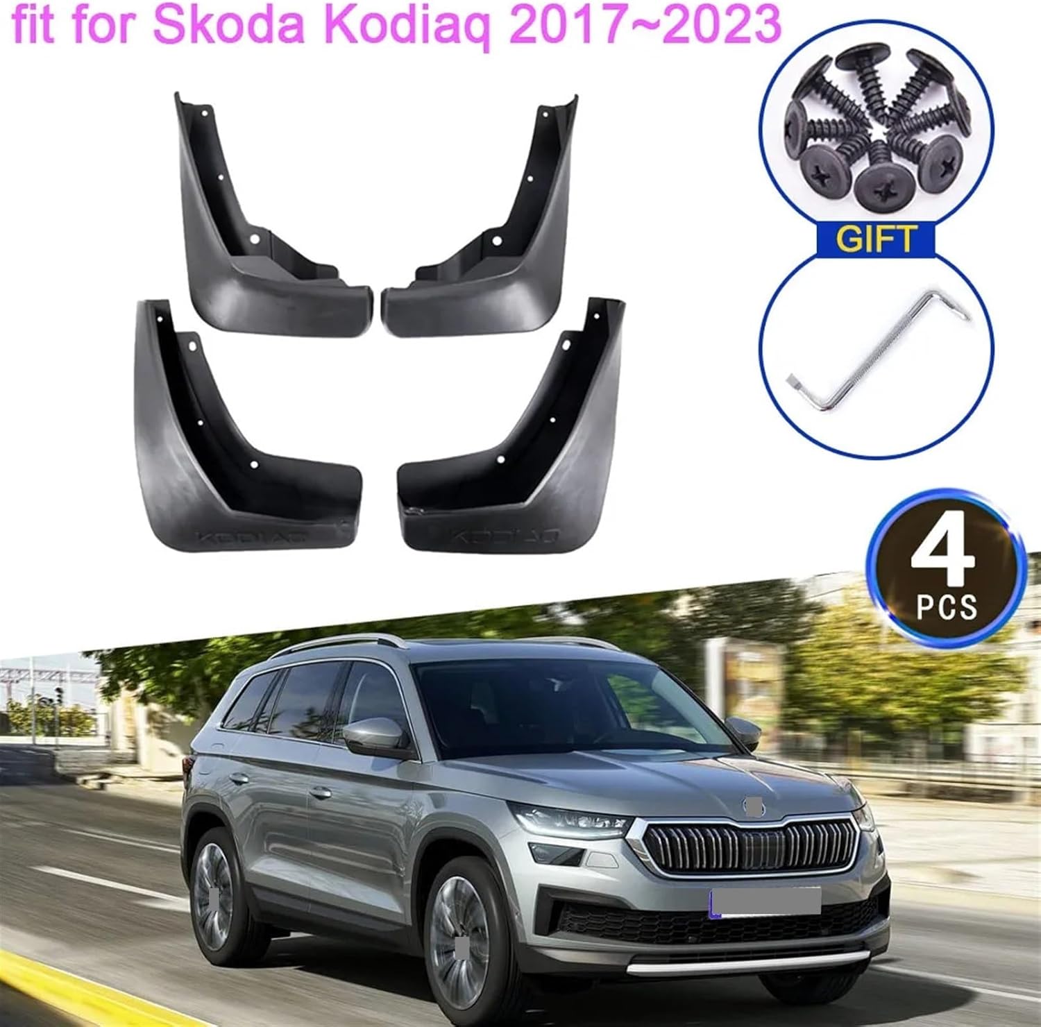 4x for skodas Kodiaq 2017 2018 2019 2020 2021 2022 2023 MudFlap Mudguards Splash Guards fenders Flare Front Rear Wheel AccessoriesFor skodas Kodiaq 2017 2018 2019 2020 2021 2022 2023Simple and Fashion Design, The Car Looks BeautifulEasy Installation, Direct FitInjection-molded thermoplastic provides superior strength and durability.Protect your vehicle from mud,dirt,snow,gravel and road salt.Product Name: Car Mud Flaps Item Type: Mudguardscolour:BlackMaterial:plasticPackage Contents:4 x Mud Flaps (2 x Front + 2 x Rear)1 Bag x Screw FixingsOnly the above package content, other products are not included.Note: Light shooting and different displays may cause the color of the item in the picture a little different from the real thing. The measurement allowed error is +/- 1-3cm.