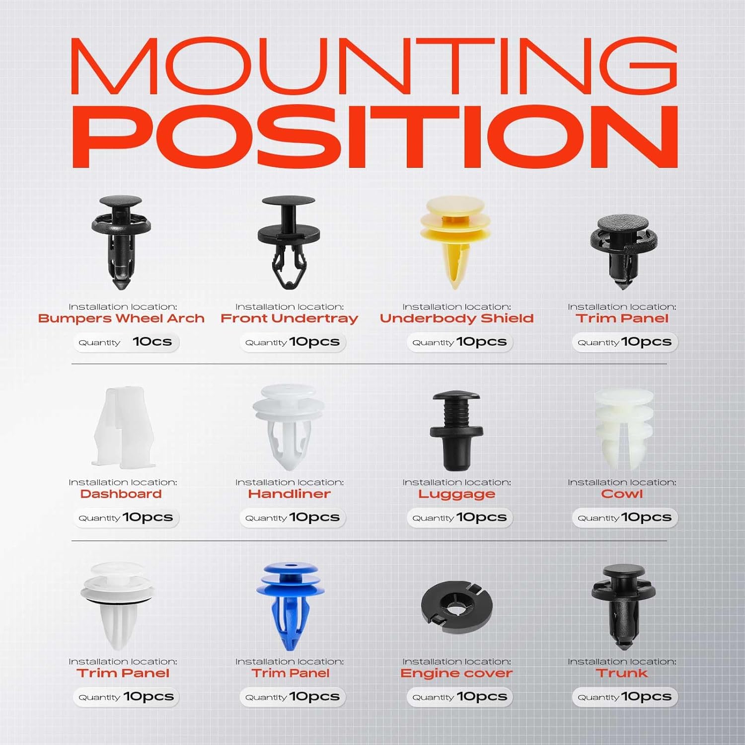 | Size Name | 120 Pcs Clips + 6Pcs Auto Trim Removal Tool Kit |
