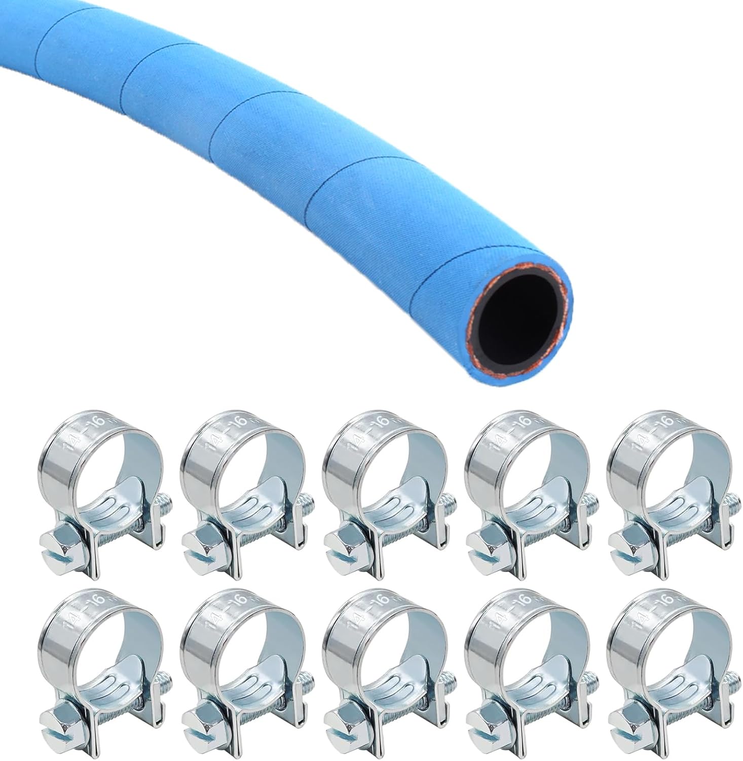 20FT Fuel Line Hose 6AN 3/8" High Pressure Hose 700PSI 9.6mm for Fuel Systems Engines Tube Hose Blue Multiple Size Options(Attached 10pcs Hose Clamp)