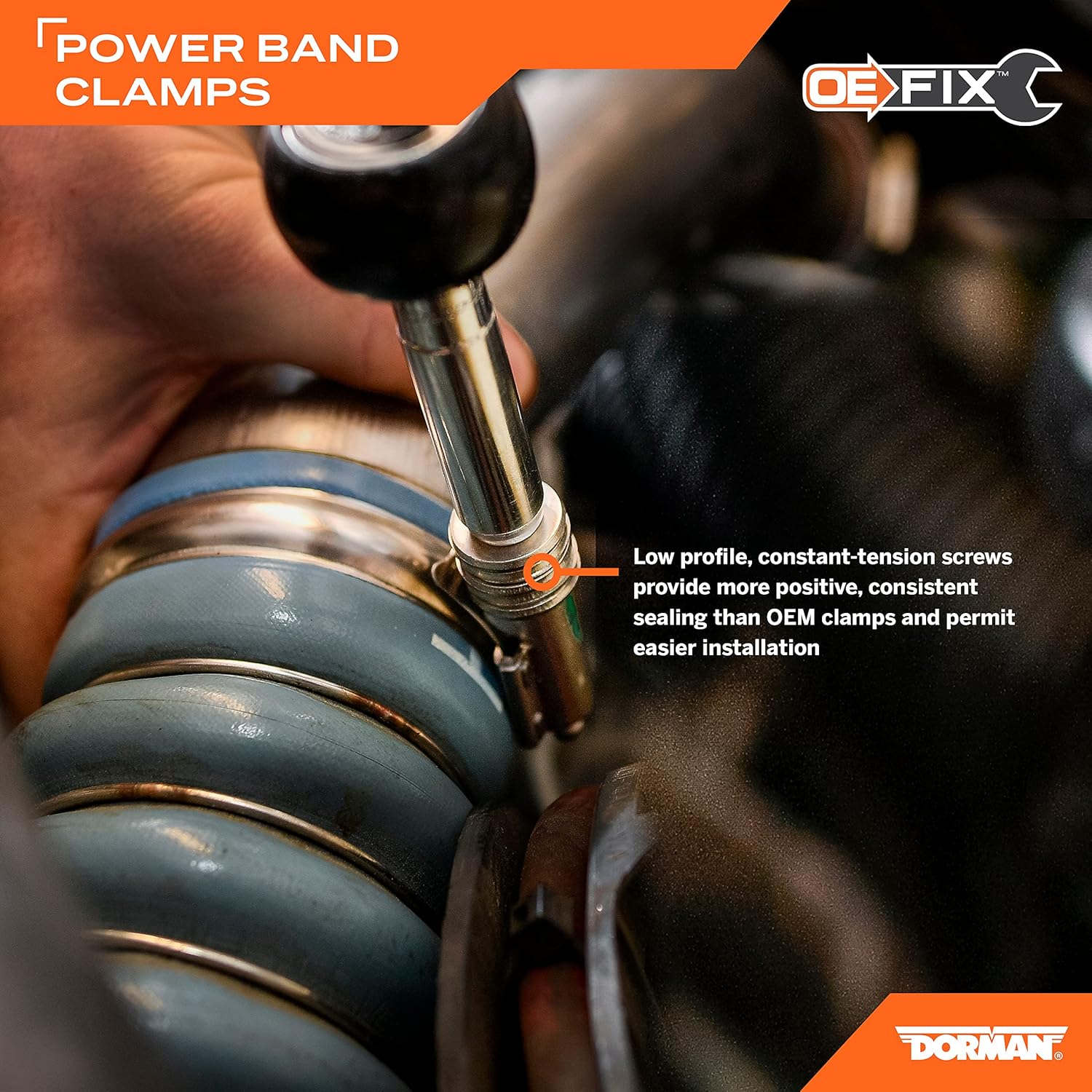 The flat surface on the original equipment hose clamps tend to apply uneven force on turbocharger pipes and hoses, often causing leaks and a loss of turbo pressure. This Dorman OE FIX Power Band Clamp features a patented curved profile that helps achieve a stronger seal than the factory clamp on boots and pipes. Powerbands are made of stainless steel, and have a low-profile spiral screw for easy installation in tight spaces. This part is compatible with the following vehicles. Before purchasing, enter your vehicle trim in the garage tool to confirm fitment. [Ram 2500: 2018, 2019, 2020, 2021] - [Ram 3500: 2018, 2019, 2020, 2021] - [Ram 4500: 2018, 2019, 2020, 2021] - [Ram 5500: 2018, 2019, 2020, 2021].