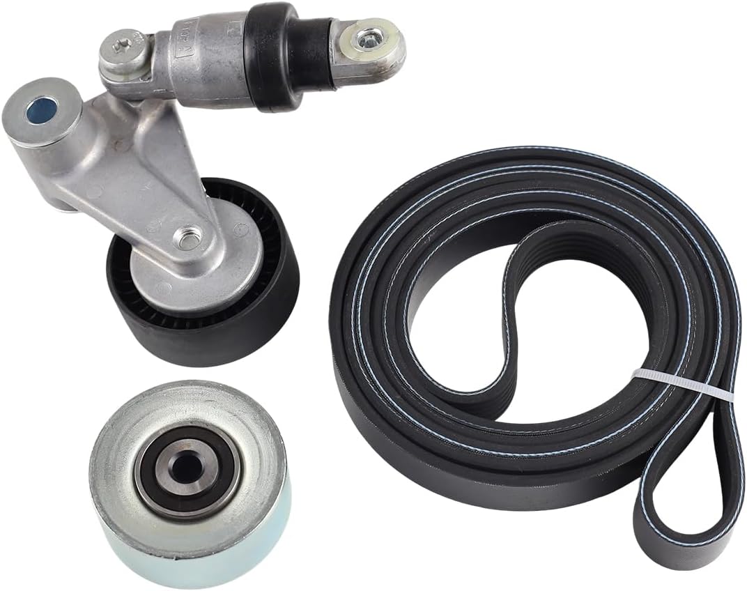 Please Note: Please confirm your model and OE number before purchase to ensure that the parts you purchase are compatible with your vehicle. Please check the related operation video when replacing. Replace Part Number: 39104 252813C100 419-004 49456 89654 999339 999339A 6PK2480 K060975 25212-3C100 25212-3C200 36325 252863C100 252863C150 252863C200 252863C250 45923 50007 89164 900501 900501A 5060975 6K975 F8AZ8620-AA PK060975 Package Includes: Serpentine Belt Drive Kit Fitment: Compatible with Hyundai Azera 2006-2011 Compatible with Hyundai Sonata 2006-2010 Compatible with Hyundai Entourage 2007-2009 Compatible with Hyundai Santa Fe 2007-2013 Compatible with Hyundai Veracruz 2007-2012 Compatible with Hyundai Santa Fe XL 2013 Compatible with Kia Sedona 2006-2012 Compatible with Kia Amanti 2007-2009 Compatible with Kia Sedona 2014 Compatible with Kia Sorento 2007-2009 Compatible with Kia Sorento 2011-2013 Compatible with Kia Borrego 2009-2010