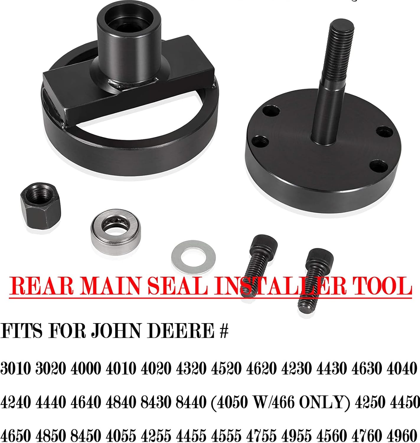 Rear Crankshaft Seal Installer Tool Replacement for JDG 476 JDG477 JDG478 ST-198 , JT30040BFits for John Deere found in 6-404 and 6-466 engines found in TRACTOR models 4000 4010 4020 4040 4045 4230 4240 4250 4320 4430 4440 4450 4520 4620 4630 4640 4650 4840 4850 6076 6081 6466 7020 8430 8440 8450 7.6L 8.1L enginesWorks with Seal OEM number: AR34682, AR30382 , RE520036, DZ111672, RE530121, RE504363, RE524227, RE22764Crankshaft Rear Main Seal Wear Sleeve Installer Tool is made of high quality carbon steel with strong strength and durability