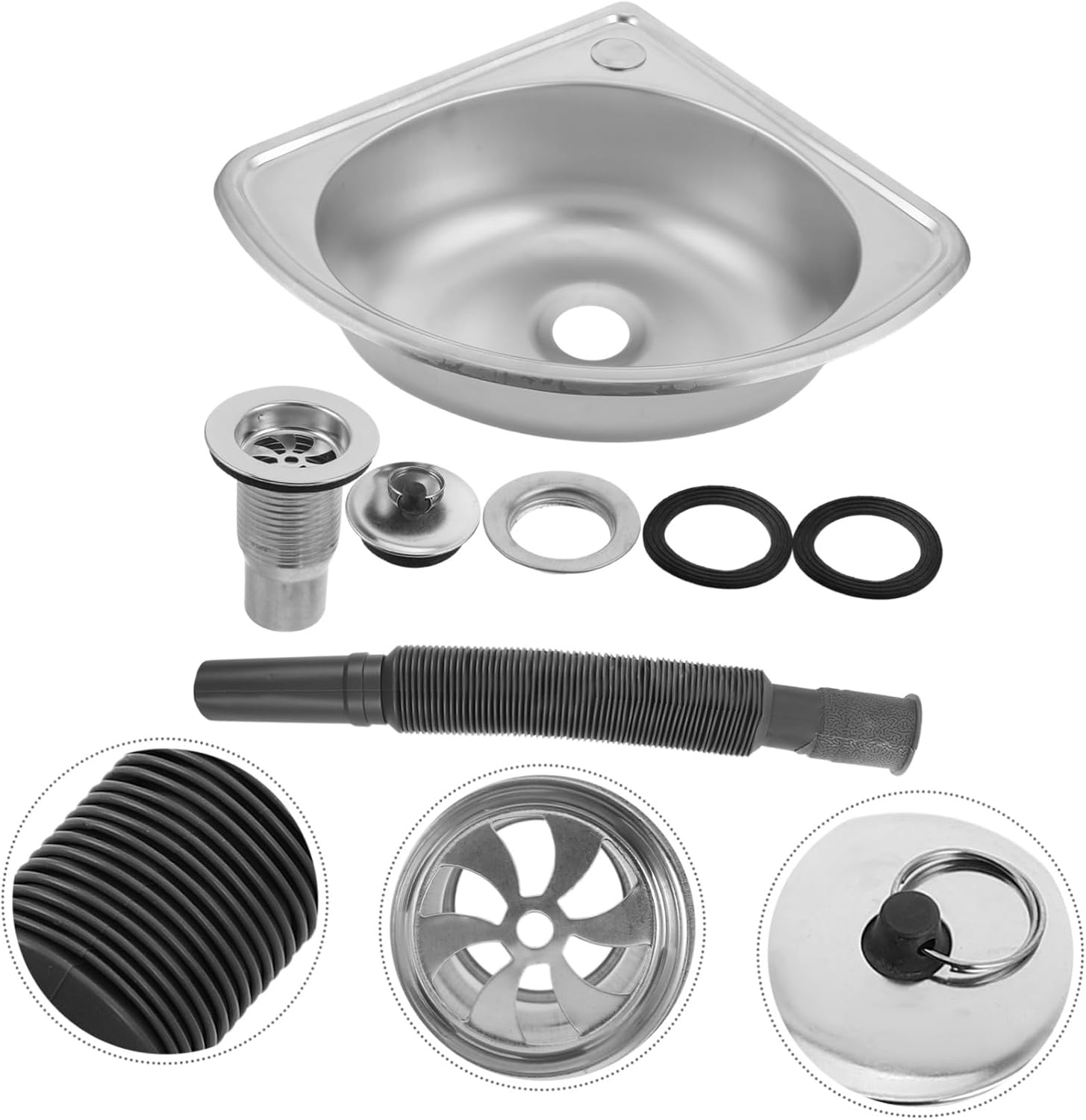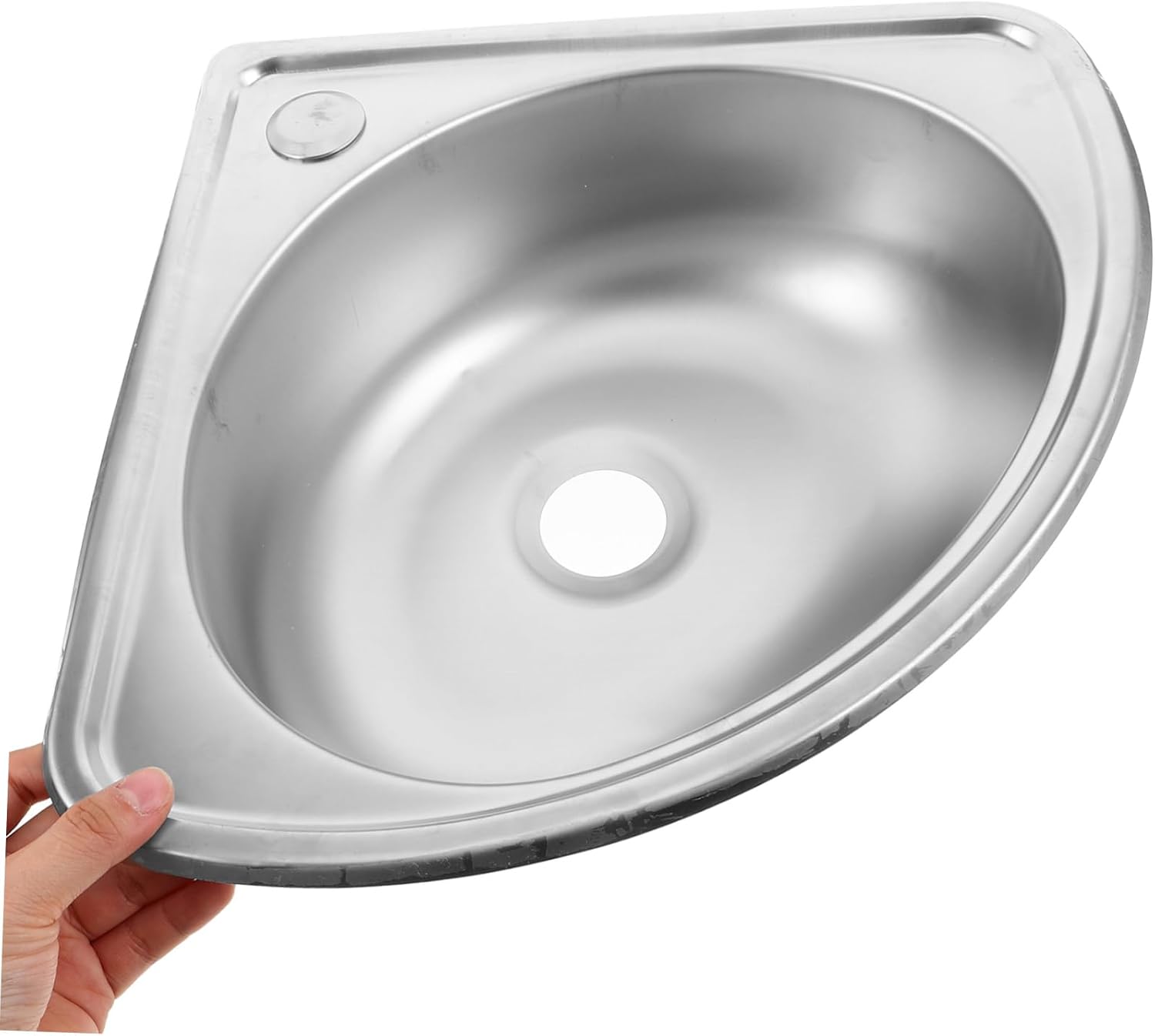 Package Include 1 x Sink 1 x Drainer 1 x Drain Features -Versatile functionality: this sink serves as a vegetable washing basin, dishwashing sink, and handwashing basin, offering multiple uses in one compact unit small kitchen sink -Quick installation: designed for easy installation, this sink can be set up without the need for professional tools, saving you ultra-small triangular wash basin -Space-saving fan shape: the innovative fan shaped design fits into corners, making it ideal for motorhomes and small kitchens where space is single-slot simple RV basin -Color:Assorted Color rvwashing sink -Efficient single bowl: the small single bowl allows for efficient use, making it good for quick tasks and small spaces small stainless steel sink for wall -High durability: made from stainless steel, this sink is built to withstand daily use and resist deformation, ensuring performance sink kitchen -Material:Stainless Steel small stainless steel sink -Size:34.50X34.50X13.50cm/13.56X13.56X5.31in drop in sinksGoods Informationwash basin The simple design of this stainless steel basin makes it easy to install and maintain.single bowl stainless steel sink Whether you're on the road or parked at a campsite, this sink provides a convenient and practical solution for all your washing needs.motorhome single bowl sink Its smooth surface is resistant to stains and easy to clean, ensuring it remains and looking new for longer