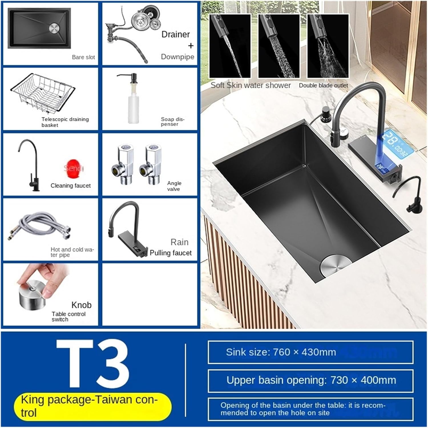 Kitchen SinksBlack Vegetable Washing Basin Large Single Slot Kitchen Sink 304 Stainless Steel Tank Household Sink Under The Table Sink