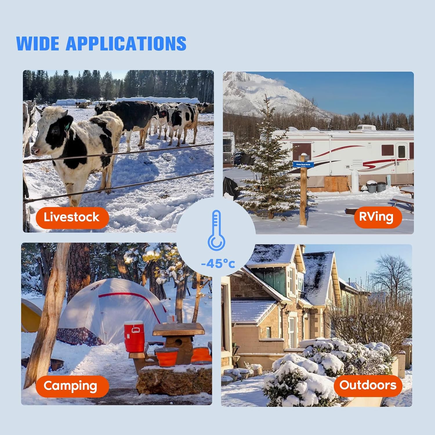 | Included Components | 1x Double-ended male thread, 1x Thread Sealant Tape, 3x Waterproof rubber rings, Heated Water Hose with Temperature Controller, Leakage Protection Device, LED Plug |