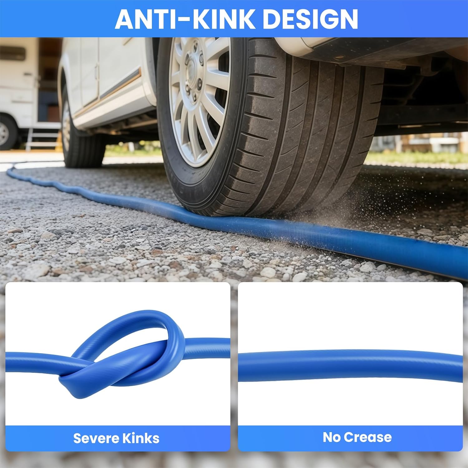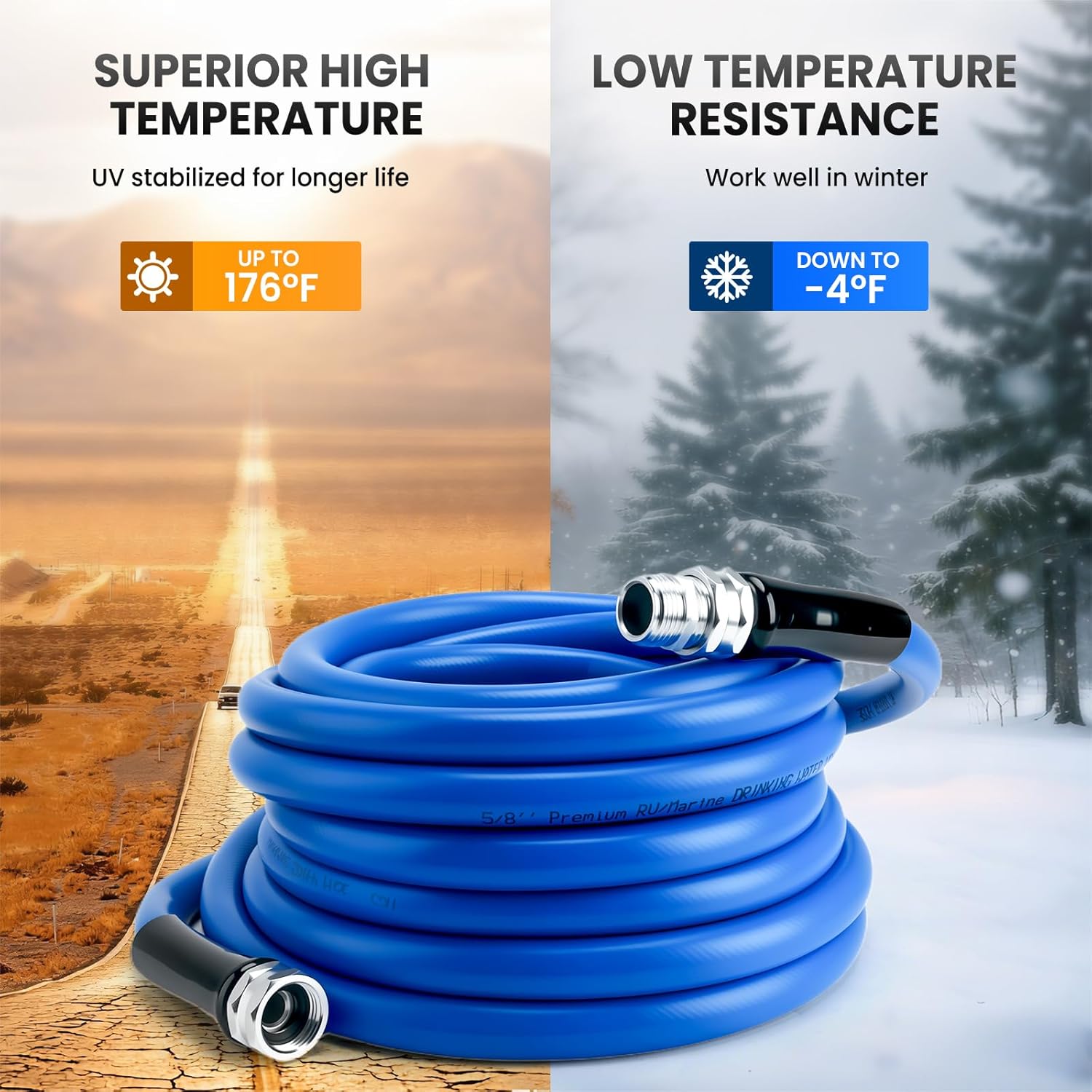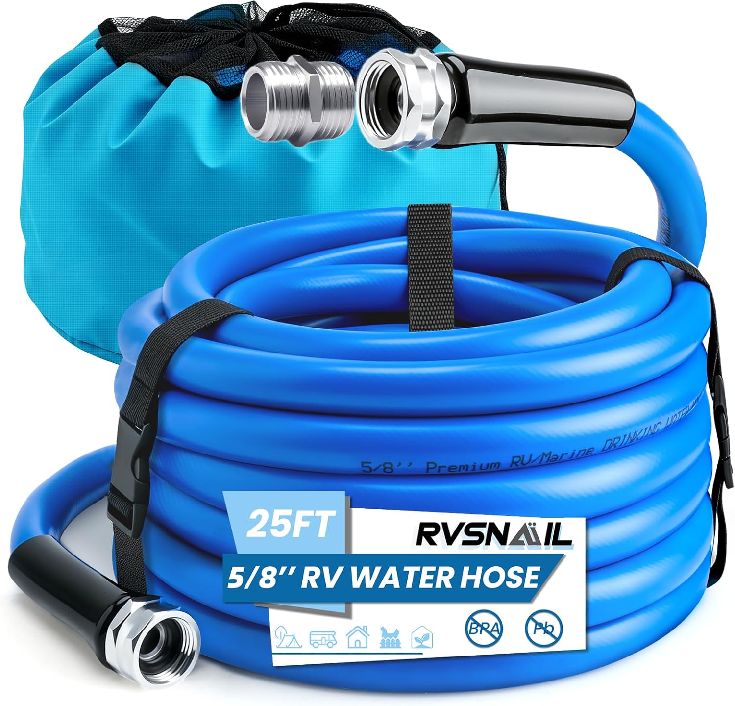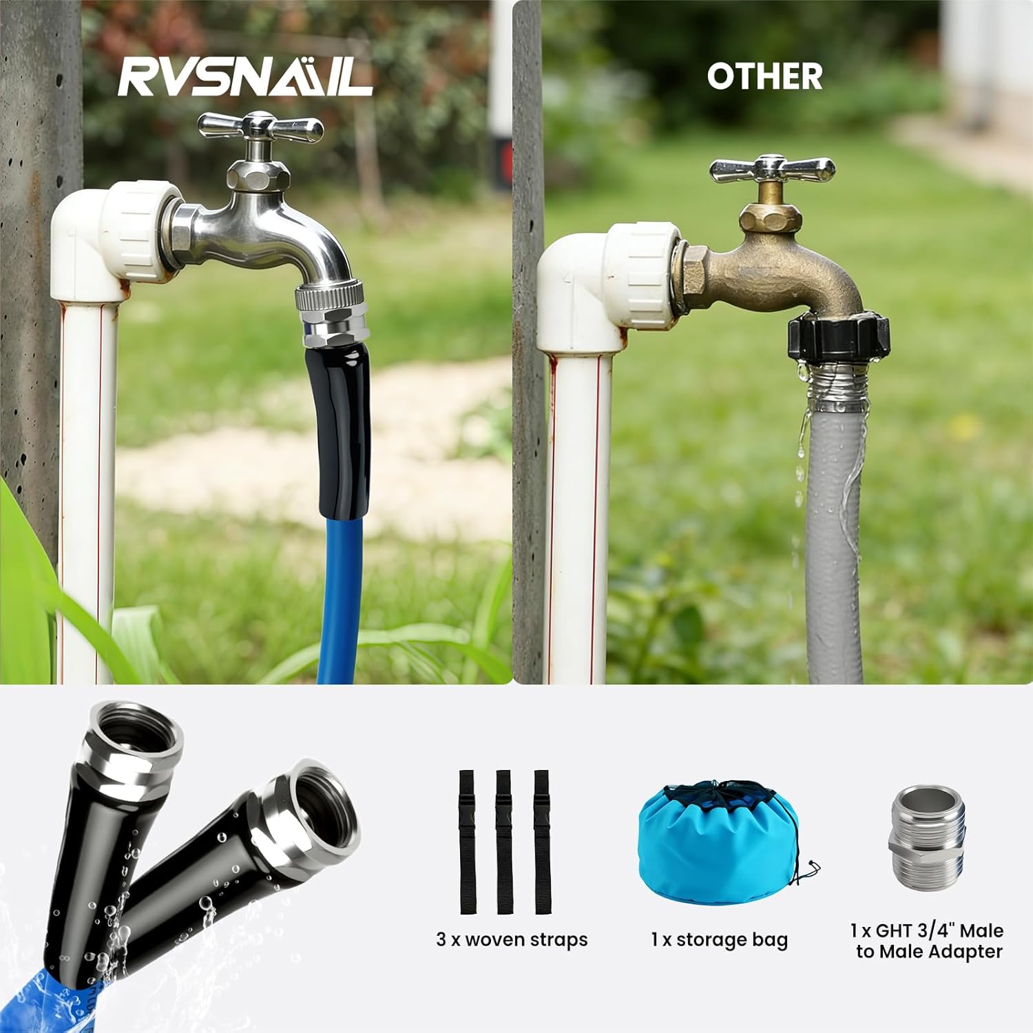 RVSNAIL 100ft RV Drinking Water Hose 5/8" Inside Diameter Food Grade Rubber Anti-Kink Leak-Proof Aluminum Fittings 3-Layer Reinforce