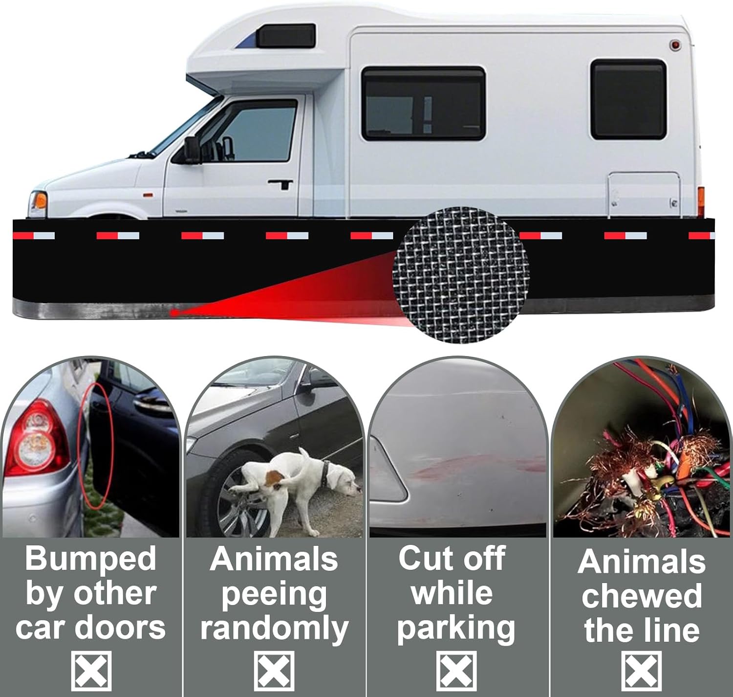 | Coverage | Full exterior coverage for RVs and trailers, universal fit |