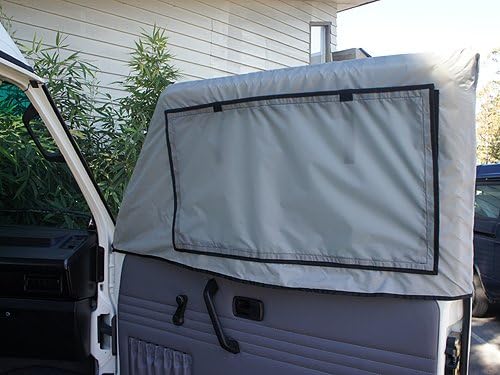 Here is another simple, effective, and affordable product for all you Vanagon owners out there that are camping out in the warm and buggy zones. These screen sets deliver multi-level protection from the elements in a simple, durable, and easy to use package. Simply slip each side over the front driver's and passenger's door frame, roll up the privacy panel, roll down the window—and get some bug-free ventilation circulating through your van. Both the screen panel and the privacy panel are replaceable (in the event that they get damaged), and the material we use for the product body is the same durable and waterproof rip-stop nylon we utilize in our pop-top "Wasser-stopper" rainfly. Features: Installs in seconds Removable/replaceable bug screens and privacy flaps No-See-Um bug screen material Waterproof, windproof, and extremely durable nylon rainfly material Sold as a pair (driver/passenger sides) Available in gray and tan—choose your color below! Folds and stores in a convenient storage bag Designed and manufactured right here in the USA