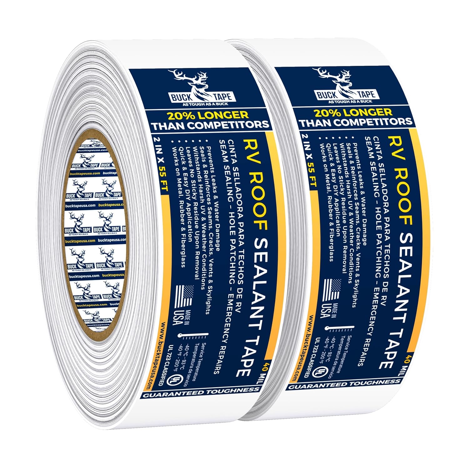 Protect your RV with confidence using Buck RV Roof Sealant Tape, the premium choice for long-lasting roof repairs. Engineered for professional-grade performance, this tape is trusted by RV owners who demand durability, reliability, and peace of mind on the road.Whether applied on roofs, vents, skylights, or windows, it creates a watertight barrier that prevents water intrusion and costly interior damage. More than just a quick RV roof patch, it provides a permanent repair solution designed to protect your vehicle for years to come.Key Benefits:Advanced butyl adhesive delivers unmatched adhesion on EPDM, TPO, PVC, Hypalon, fiberglass, aluminum, and more.Will not peel, crack, or dry out over time—built for all-weather durability.Flexible design ensures a snug fit even on curved seams and corners.Effective against heavy rain, snow, and extreme heat.Quick & Hassle-Free Installation: Simply peel and stick for a clean, seamless finish. The white design blends naturally with most RV roofing materials, avoiding the messy look of tar or asphalt patches. No primers, caulks, or special tools required—just fast, professional results every time.Choose Buck RV Roof Sealant Tape for premium protection that outperforms ordinary RV repair tape. When leaks threaten your travels, Buck ensures your roof—and your investment—are always secure.
