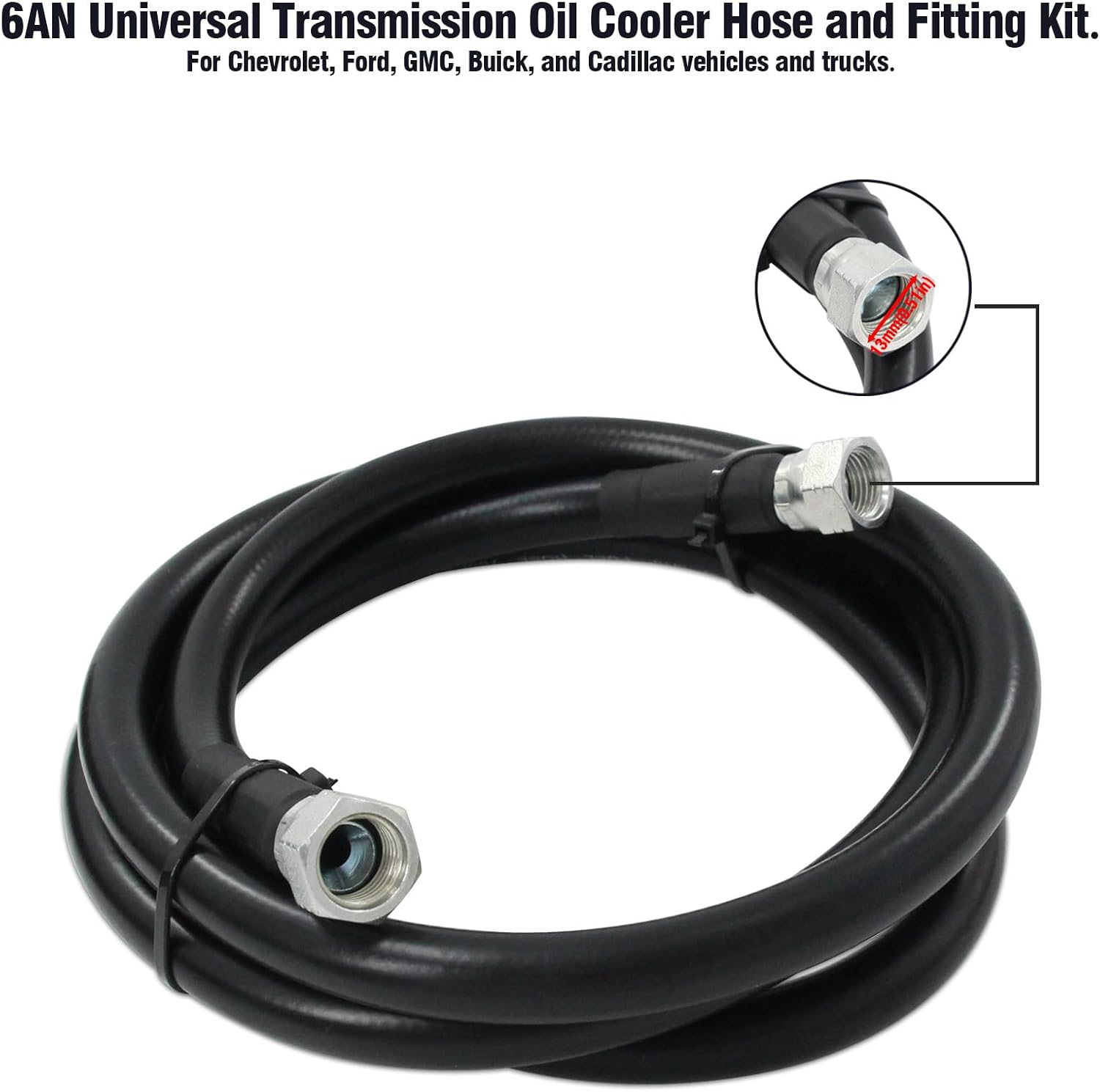 6AN 70" Transmission Cooler Hose Fitting Kit For GM Chevy 1996-2021 4L80E, For Ford C4-C6-AOD, For Turbo 350/400/200-200R4/700R4 4L60 4L60E 4L65E