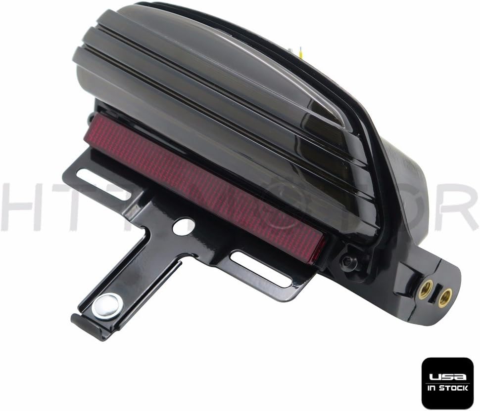 HTTMT MT450-001- Smoke Tri-Bar Fender LED Tail Light Bracket Compatible with Harley FXST FXSTB FXSTC Softail