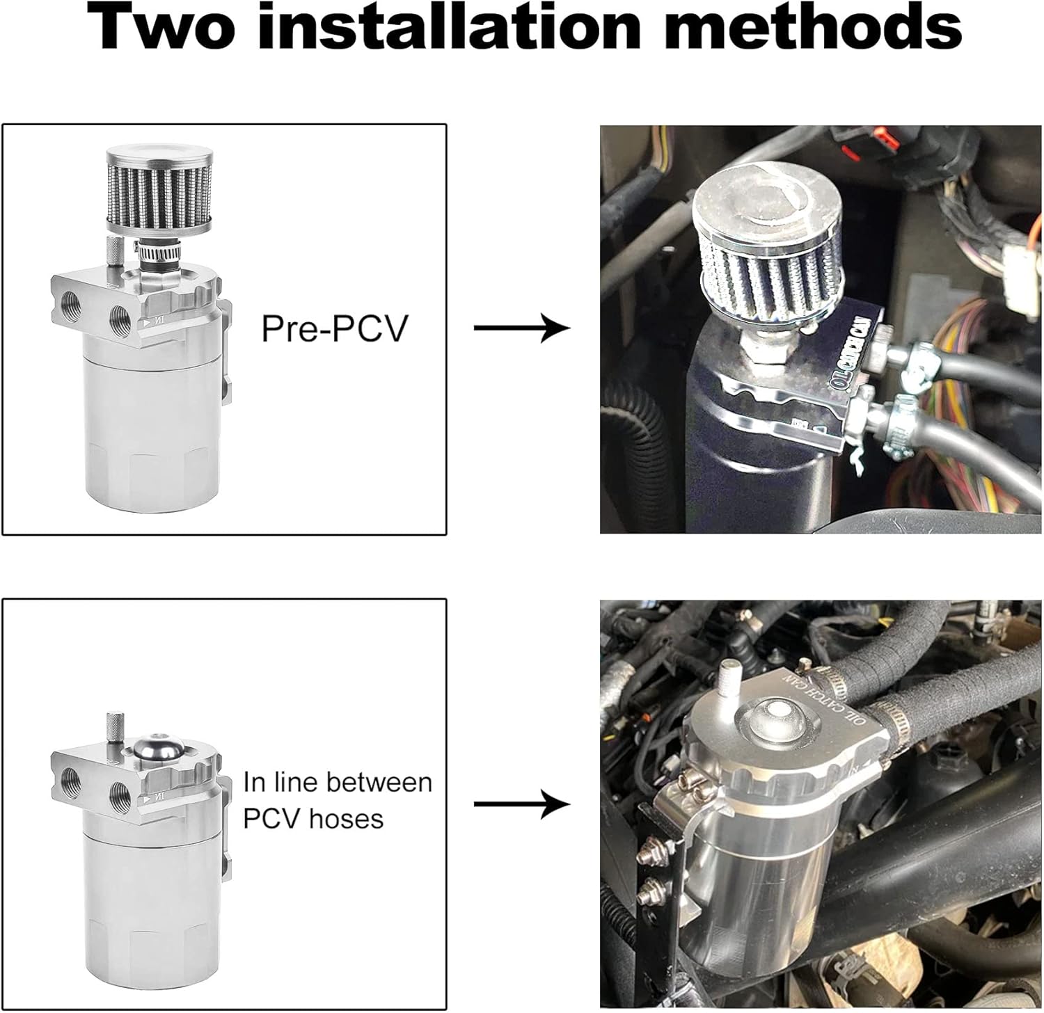 Bundle Included: 1pc oil catch can with breather filter and 1pc 1L overflow tank