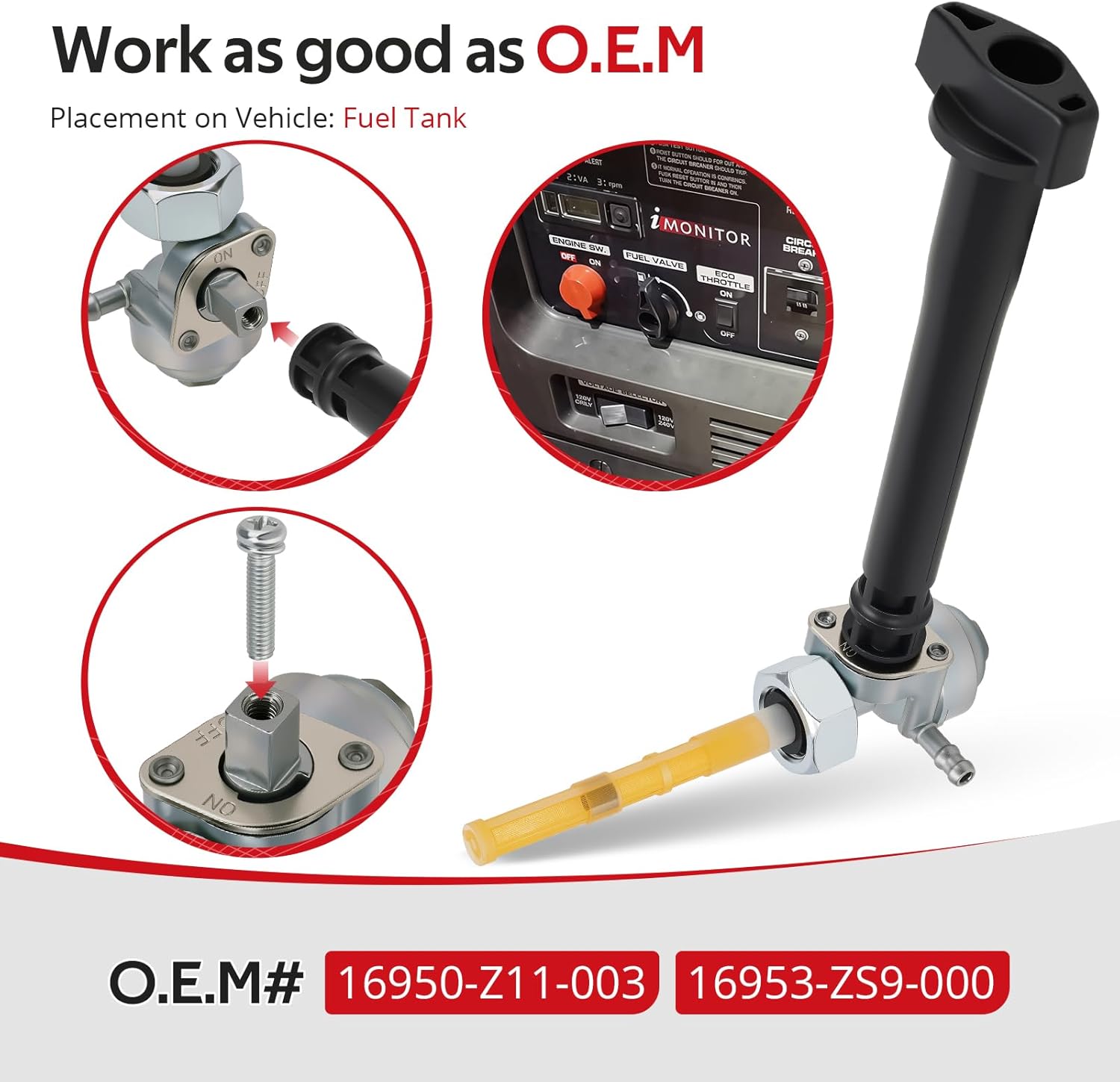 O.E.M# 16950-Z11-003 16953-ZS9-000Package:Petcock Valve Assembly x1Petcock Shut Off Lever x1Bolt x1Fit For Honda EngineEB5000IEB7000IEM5000ISEM5000IS1EM7000ISEU3000IS1EU6500ISEU6500IS1