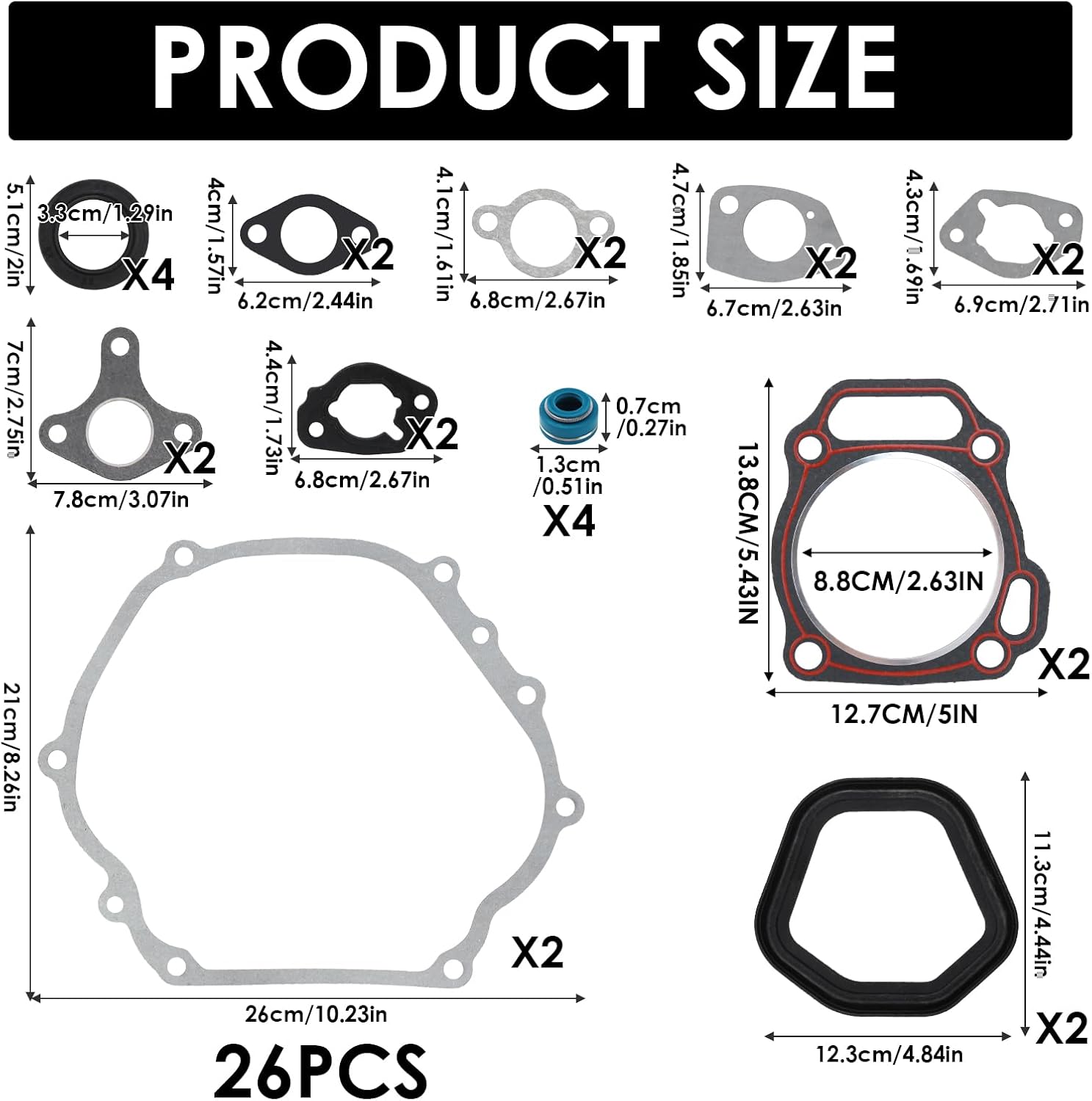 Package: 24 Pcs Predator 389cc Gasket KitSize: InchesMaterial: Rubber, GraphiteIntroduce1. Introducing the 24 Pcs Predator 389cc Gasket Kit, your ultimate solution for engine maintenance and repair. This comprehensive kit includes engine and carburetor gaskets, head gasket sets, and small powersports engine washers, designed specifically for 389cc, 420cc, and 8.7kW 9.7kW generators.2. Crafted with high-quality carburetor gasket material, this gasket set ensures a perfect fit and exceptional durability. It guarantees a secure seal, preventing any leaks or loss of power. Whether you are replacing worn-out gaskets or performing routine maintenance, this kit provides all the necessary components to keep your engine running smoothly.3. Engineered to meet the highest standards, this gasket set is a reliable choice for both professionals and DIY enthusiasts. The precise design and premium materials ensure optimal performance and longevity, allowing you to tackle any engine-related task with confidence.4. Upgrade your engine's performance and prolong its lifespan with the 24 Pcs Predator 389cc Gasket Kit. Get yours today and experience the difference in engine efficiency and reliability.