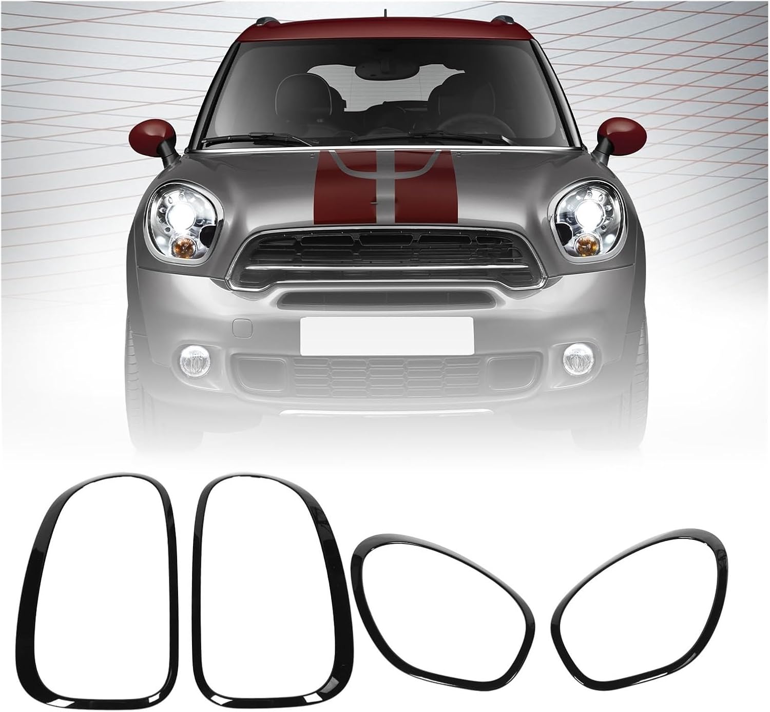 4pcs Headlight Taillight Bezel Trim 51139801573 Compatible For Countryman R60 2010 To 2016 Gloss BlackSpecification:Item Type:HeadlightandTaillightBezelTrimMaterial: ABS+PPProduct OEM: 51139801573, 51139801574, 63129812631, 63129812632Color: Gloss BalckQuantity: 2 headlight frames +2 taillight framesInstallation Type: Replacement type with mounting buckle on the back(replacement, not add on)Fitment:Compatible For Countryman R60 2010-2016(For All Standard Base / replacement forCooper S / JCW / All4 Models!)Package List:1 x Pair Headlight Bezel Trim1 x Pair TaillightBezelTrimDear friends, welcome to our store. We are a professional automotive parts factory where a variety of high-quality automotive parts are gathered, including engines, chassis, bodies, electronic devices, and other accessories. Every product undergoes rigorous testing to ensure a more comfortable and safe driving experience. We will help you solve the problem in a timely manner. Please confirm if the part number matches your original part number. If you are unsure, please feel free to consult. Good luck!