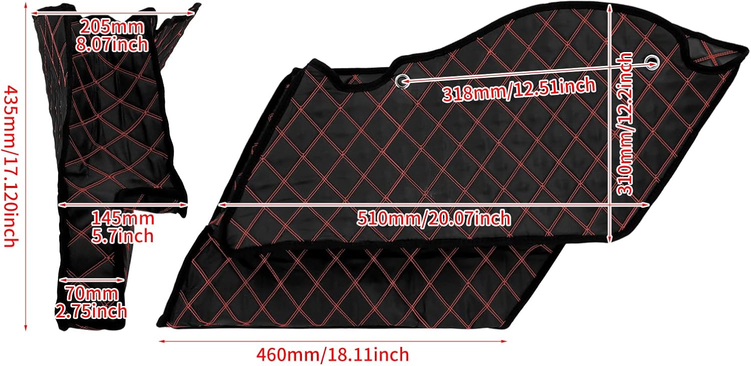 | Size | Fits 5 Inch Stretched, Tapered Bottom Saddlebags |