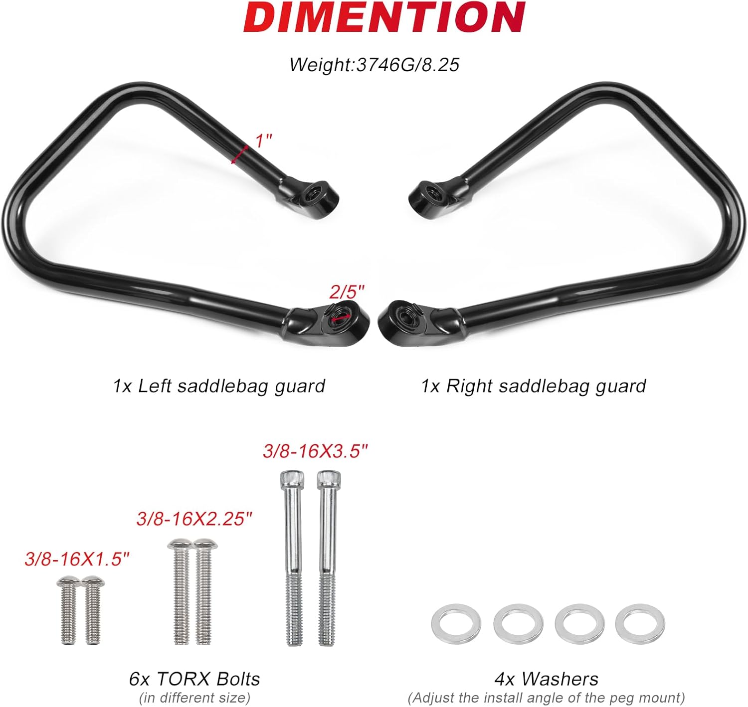 | Included Components | Left & Right Saddlebag Guard Bar, Mounting Bolts & Washers |