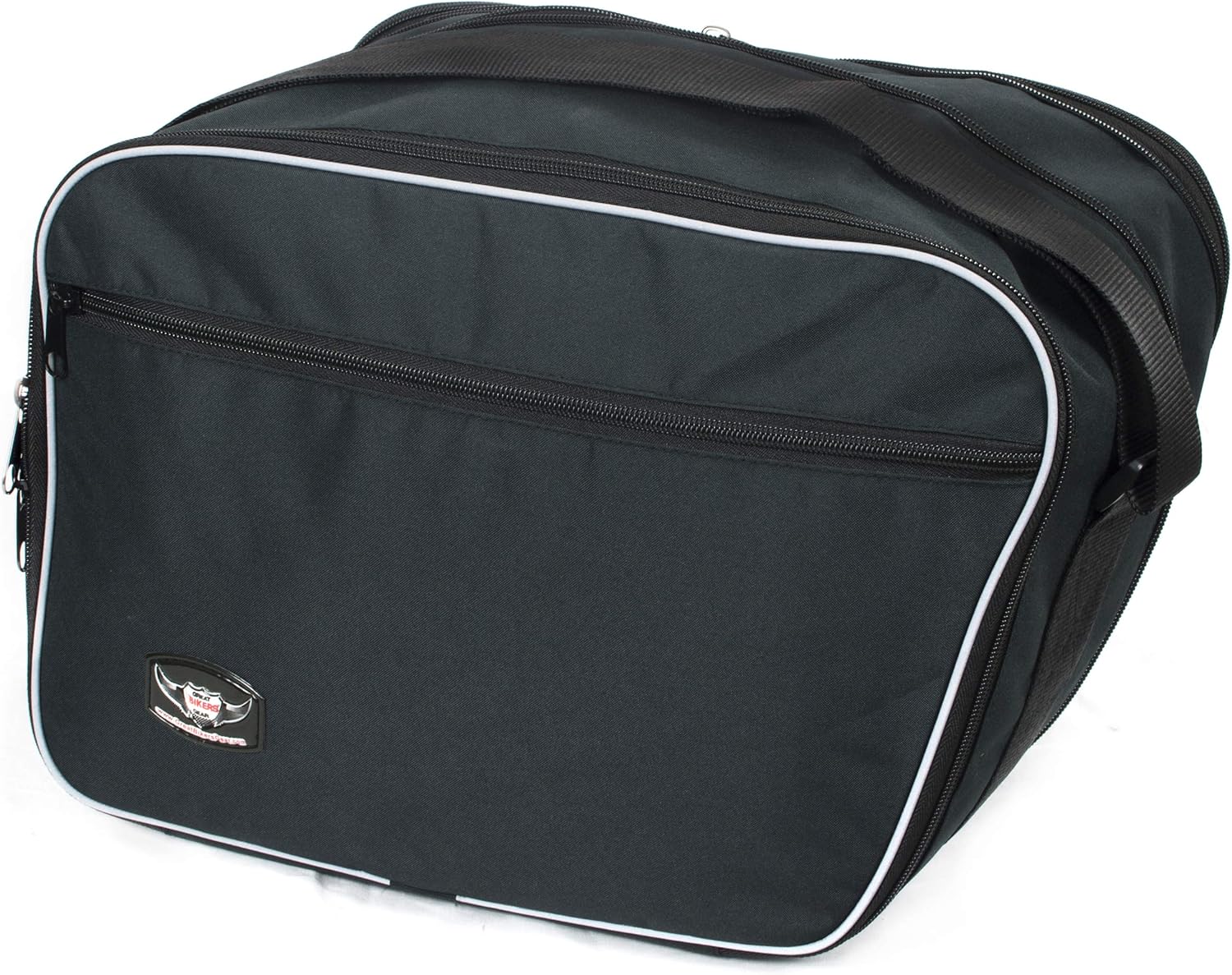 Great Bikers Gear offers the finest quality pannier for BMW R1250RT .Pannier inners come with perfect looks, tempting design and have the ability to carry enough weight. Reflective piping is used which not only look good but also improve its visibility in the dark. Priced very reasonably as compared to other brands in the market. Heavy-duty 600 x 600 Denier Polyester Vinyl Laminated PVC material is used to make these bags durable and sturdy. Heavy duty nylon thread is used in stitching to keep the pannier liner bag safe from splitting off when fully packed. Strong piping keeps the pannier bags in shape for perfect fitting into the panniers and utilize maximum space and aren't vulnerable to split. Packing your stuff in these pannier bags is very simple and smooth as these bags open wide like a suitcase. High-quality zippers adds smoothness and doesn’t stick while opening and closing the bag. These bags are very handy and lightweight so you can move it where ever you go. Carry handles and shoulder strap which makes it accessible to carry them anywhere. Extra outside pocket is added in the design to let you put maps and travel documents.