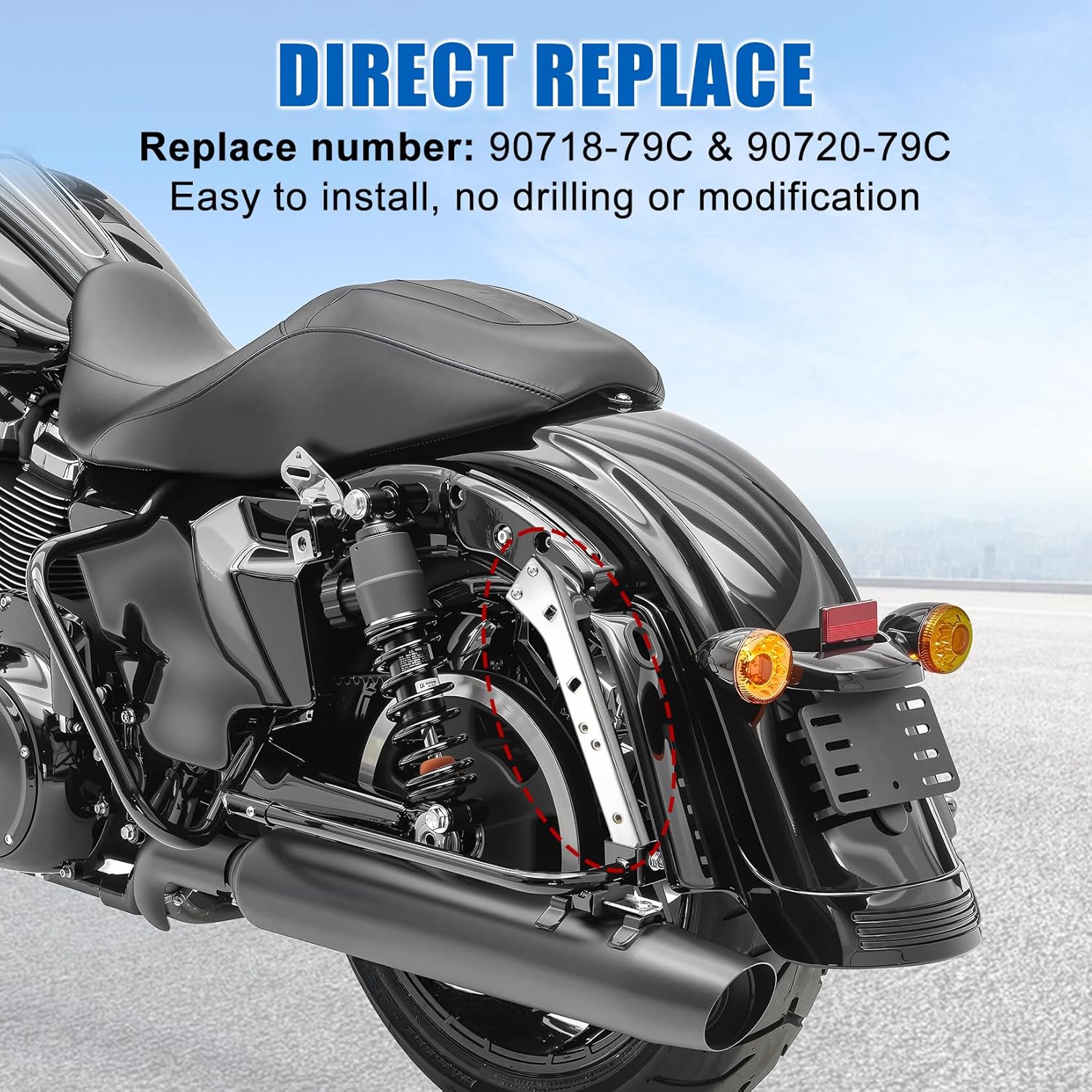 Fitment Road Glide saddle bag mount brackets fit for: Electra Glide Ultra Classic EFI FLHTCUI 2007-2008 Street Glide EFI FLHX 2006-2008 Street Glide FLHX 2006 Road King Custom EFI FLHRS 2004-2007 Road King Custom FLHRS 2004-2006 Electra Glide Standard EFI FLHTI 2003-2008 Road Glide EFI FLTR 1998-2008 Road King Classic EFI FLHRC 1998-2006 Road Glide FLTR 1998-2002 Road King EFI FLHR 1996-2001, 2007-2008 Tour Glide Ultra Classic EFI FLTCU 1996 Electra Glide Classic EFI FLHTCI 1995-2008 Road King FLHR 1994-2006 Electra Glide Ultra Classic FLHTCU 1989-1999 Tour Glide Ultra Classic FLTCU 1989-1996 Electra Glide Classic FLHTC 1983-2005 Tour Glide Classic FLTC 1980-1994 Tour Glide FLT 1980-1983 Electra Glide Standard FLHT 1983, 1985-1987, 1995-2006 Specifications Condition: Saddlebag side mounts are 100% brand new aftermarket item Material: Saddlebag support brackets for touring are made of steel Color: As pictures shown Package contains A pair of saddle bag side mounts Notes 1.We strongly suggest comparing the posted picture to your faulty/old unit!Please kindly check your motorcycle's model and confirm this item is suitable for it before ordering. 2.The product does not contain installation instructions. If you have any questions about that, we kindly recommend you go to the nearby mechanic to ask for professional instructions. 3.Installation:Easy to install,assemble and remove with great convenience,direct replacement.Highly recommended installation by professional. 4.Color Difference: Due to the light and resolutions setting difference, the item's color may be slightly different from the pictures. 5.Please allow slight dimension difference due to different manual measurement.