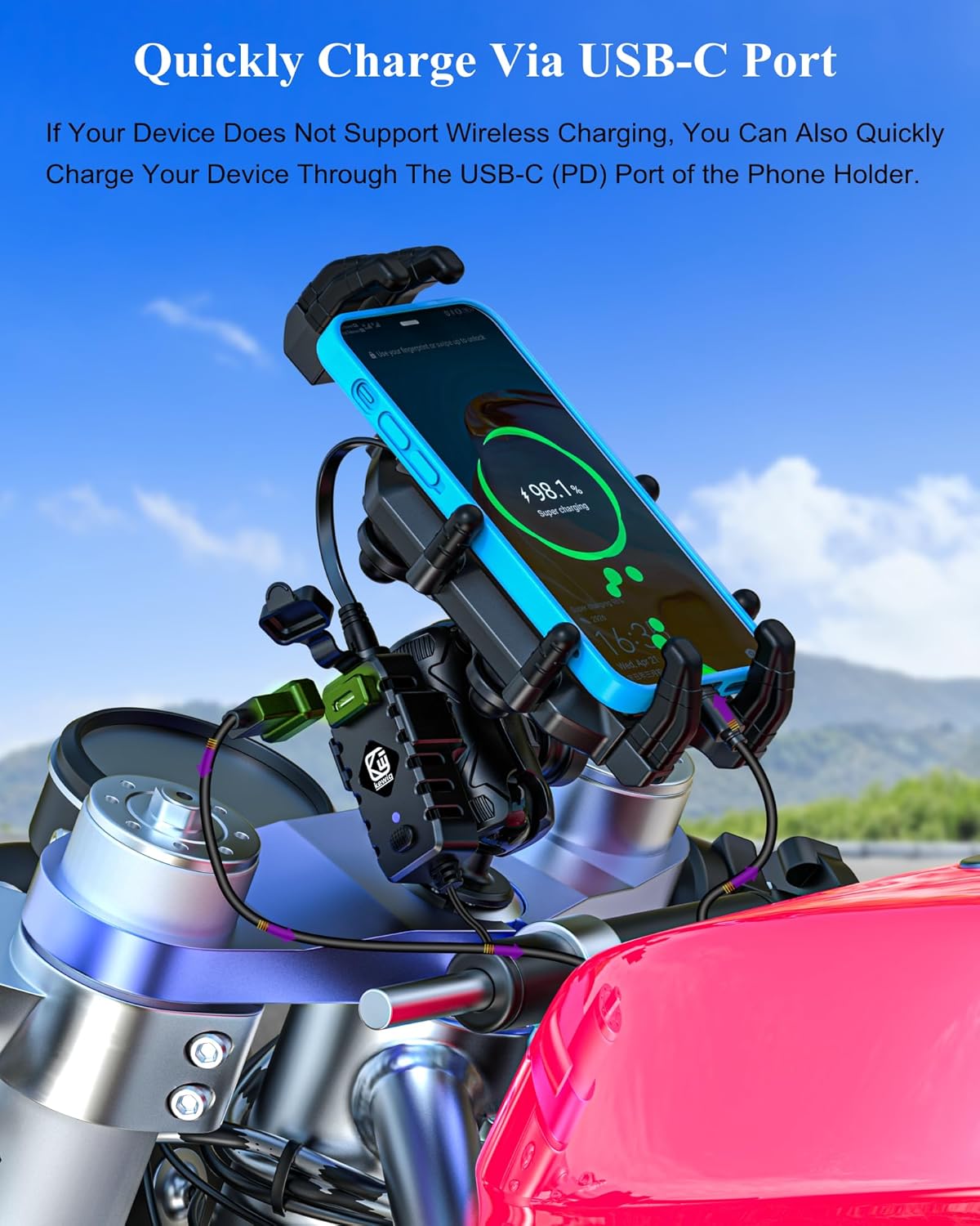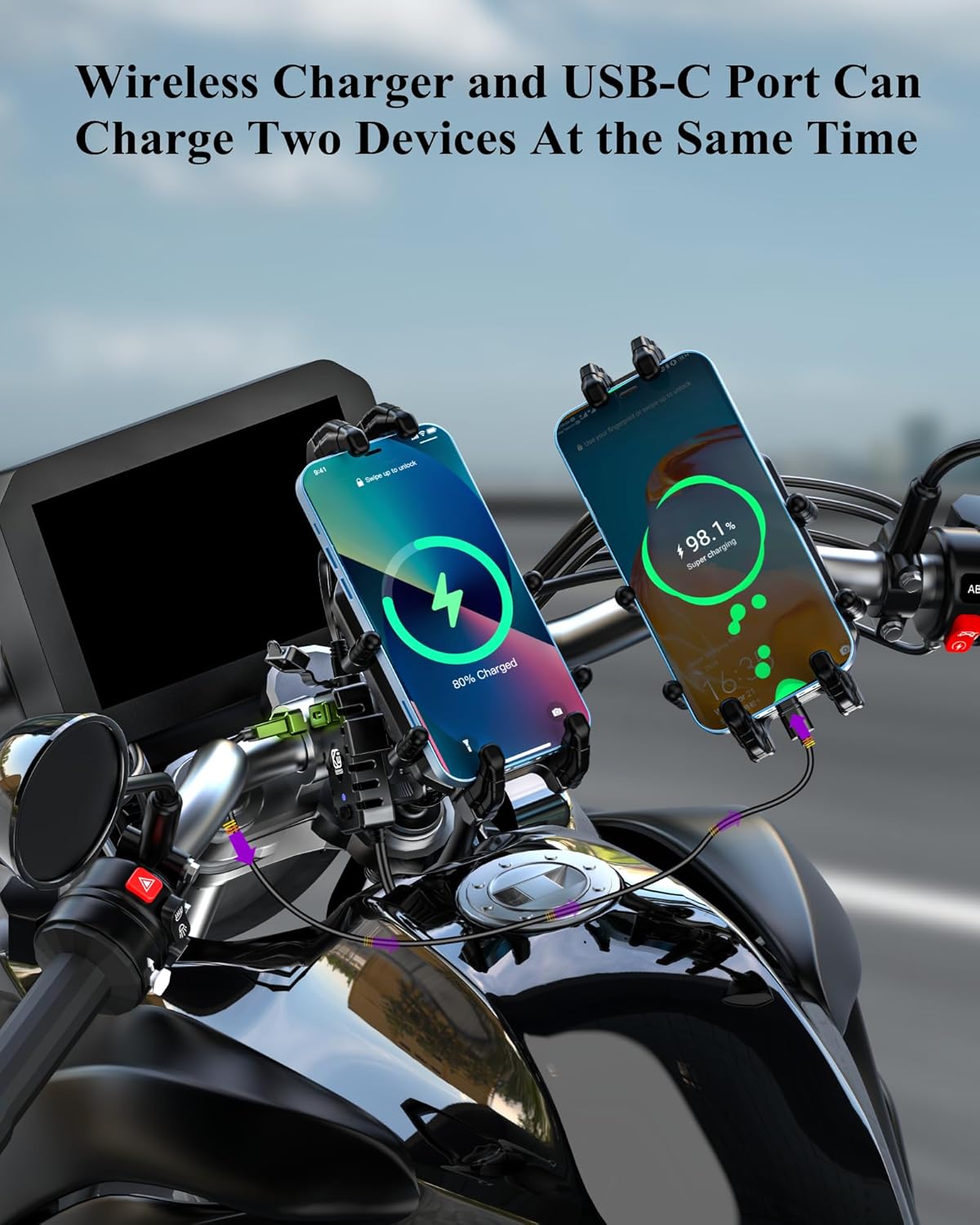 | Additional Features | IP66 Waterproof, Anti-Theft Design, With Qi 15W Wireless Charger & 36W PD/USB-C Fast Charging Port, with Vibration Dampener & High-Speed Secure Lock, Adjustable size |