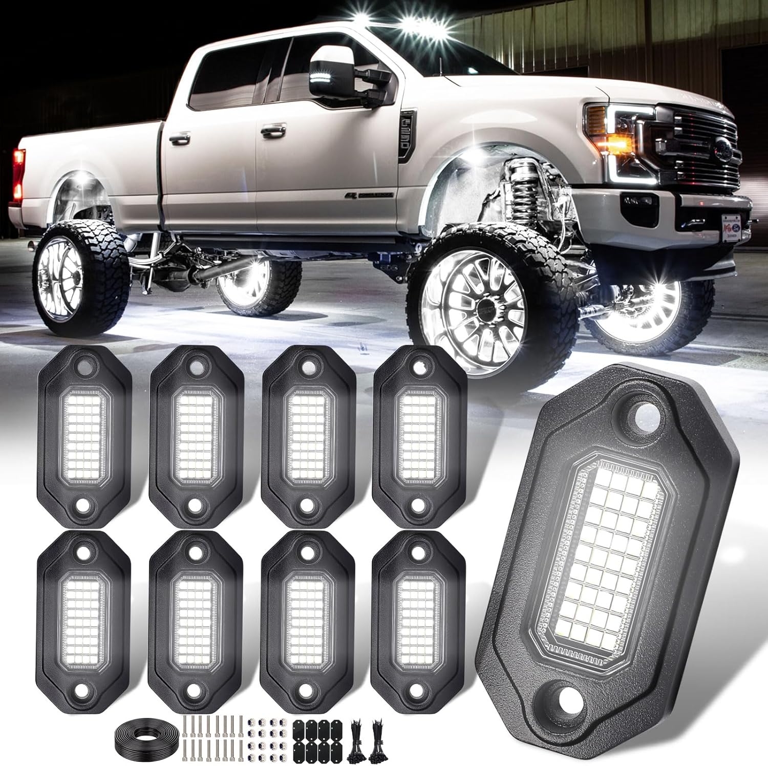 | Included Components | 12 Pcs Gasket, 12 Pcs Rock Lights, 12 Pcs Screw kits, 180FT Wiring Harness(Per pod provided 15FT power cord), 60 Pcs Cable Ties |
