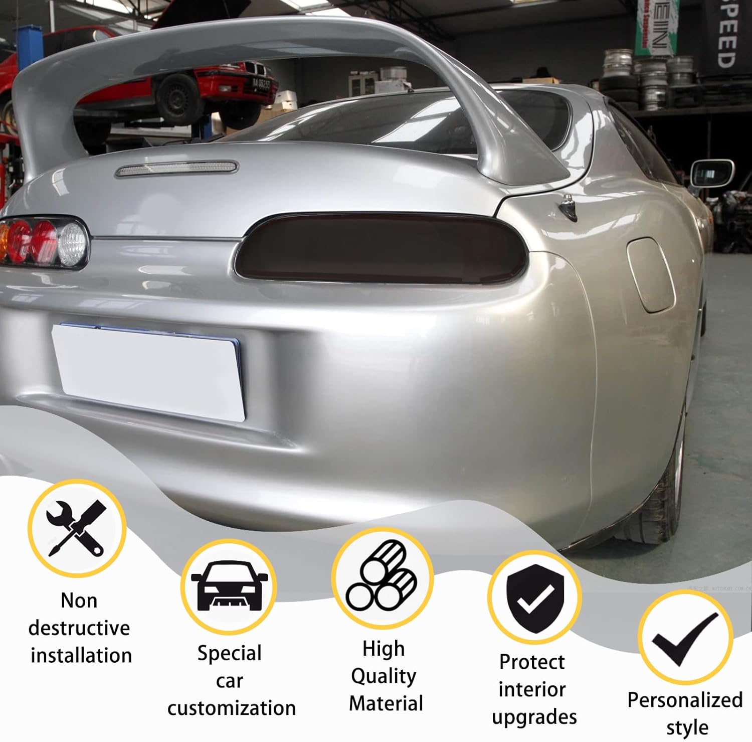 Effective Protection The Taillight From Scratch Condition: 100% Brand New Rear Tail lamp Decorative Protection Trim Product features: Light weight, Durable, Scratch-resistant, Easy to install Fitment: - Car Taillight Cover fit for Toyota Supra 1993-2002 Material:Lights Cover Reversing Lamp Protection Made of ABS Package Include: 2 PCS Tail Lights Reverse Lights Cover Trims Item specifications: 100% brand new and high quality guaranteed Easy to use and to operate at affordable prices. Tail Lights Reverse Lights Cover Trims Bring the most beautiful colors to your interior And can bring the protection of car interior This Smoked Taillight Shell Trim Cover No need to punch holes, no screws, direct installation 1.The back of come with 3M tape. 2.Wipe clean the around in advance, and keep dry and clean. 3.Tear off the tape and press it tightly, and the installation can be completed quickly and easily. 4.If the weather is cold. Please use the hair dryer(hot air blowing)in order to provide the best viscous. 5.Please keep dry after been install at least 72 hours. Or it will easy to fall off. 6. Any quetion about installation, please feel free contact us. NOTES: Please check whether this item can fit on your car before purchasing