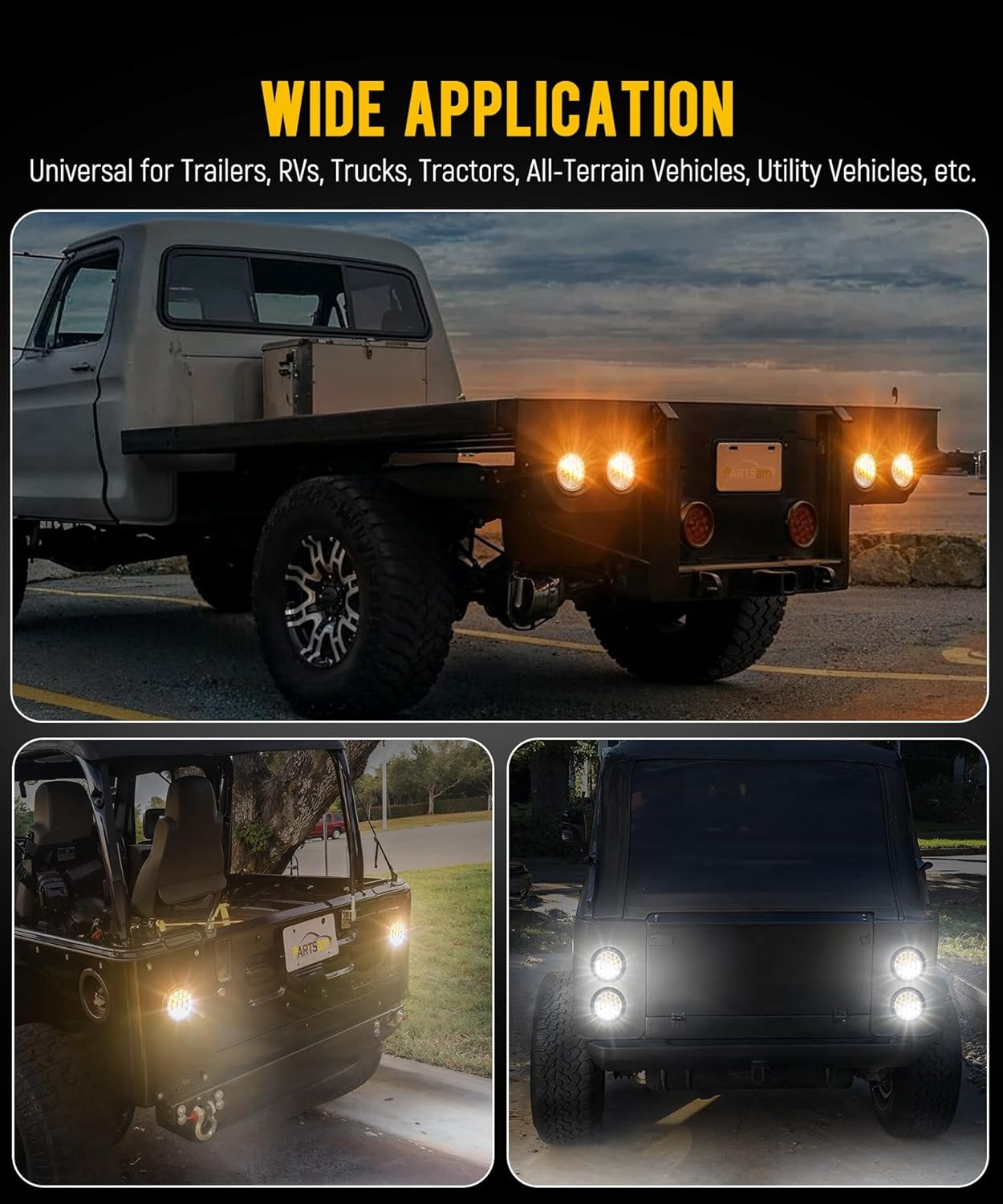 | Compatible with Vehicle Type | Trailer, RV, Truck, Tractor, Pickup Trucks, Heavy-duty Trucks, All-Terrain Vehicles, Snow Mobiles, Utility Vehicles, etc. |