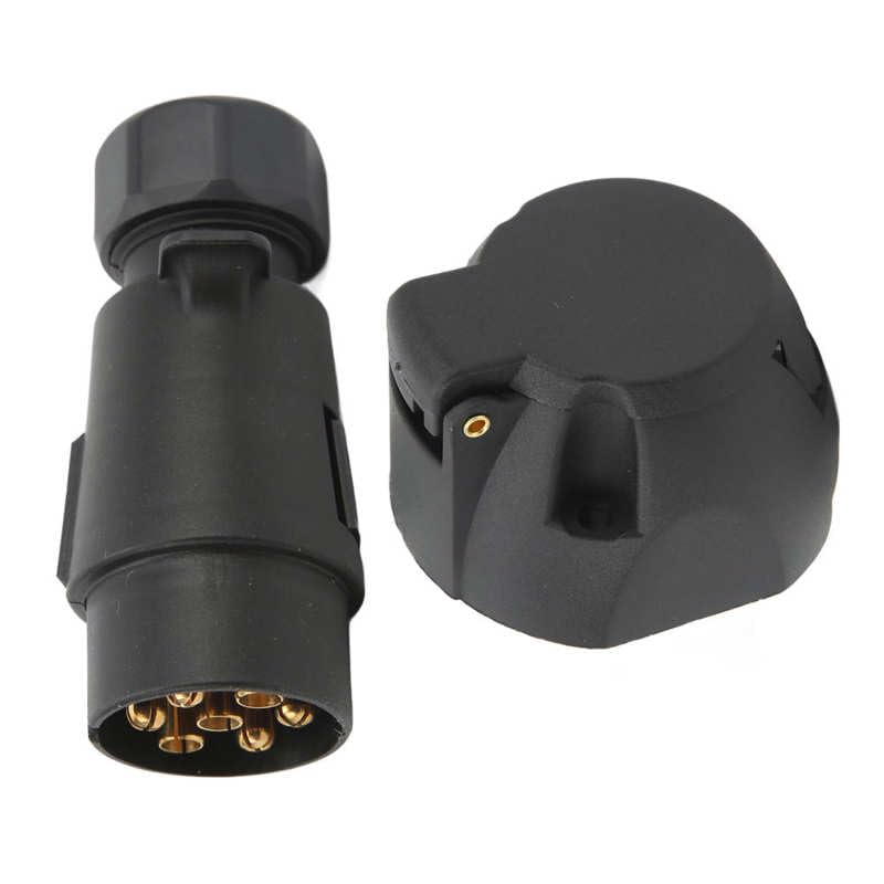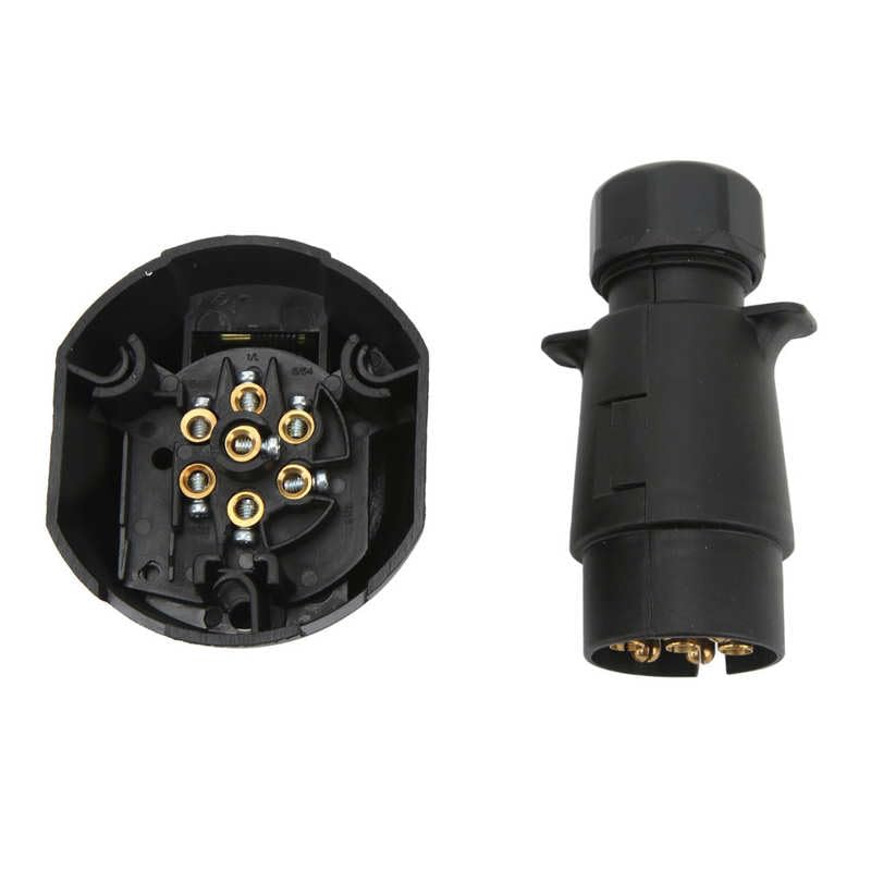7 Pin Wire Connector Easy To Install Trailer Plug Socket for Vehicle Wiring Features:1. Wide Applications: 7 pin trailer plug socket connector kit, widely used in trailers, recreational vehicles, cars and boats, convenient and practical.2. Excellent Material: The plug and socket are made of copper and plastic, with high transmission efficiency and corrosion resistance, not easy to crack.3. Easy Connection: The connector has standard pins, which can be connected to the corresponding wire accurately, with stable performance.4. Other Accessories: Equipped with bracket, gasket and bolts, the trailer connector is easy to install and disassemble, has strong practicability.5. Replacement Parts: The trailer plug socket has standard specifications and can directly replace the old or damaged plug socket connector.Specifications:Item Type: 7 Pin Trailer ConnectorConnection Type: Screw ContactMaterial: ABS, Copper, IronConnection Mode: PIN 1: Yellow Line (Left H Direction Indicator Light), PIN 2: Blue Line (Rear Fog Light), PIN 3: White Line (Grounding), PIN 4: Green Line (Right H Direction Indicator Light), PIN 5: Brown Line (Right H Tail Light and License Plate Light), PIN 6: Red Line (Brake Light), PIN 7: Black Line (Left H Tail Light and License Plate Light)Applications: Suitable for trailers, RVs, cars and boatsPackage List:1 x 7 Pin Trailer Plug1 x 7 Pin Trailer Socket1 x Bracket1 x Gasket3 x BoltsItem specifics:Origin: Mainland China