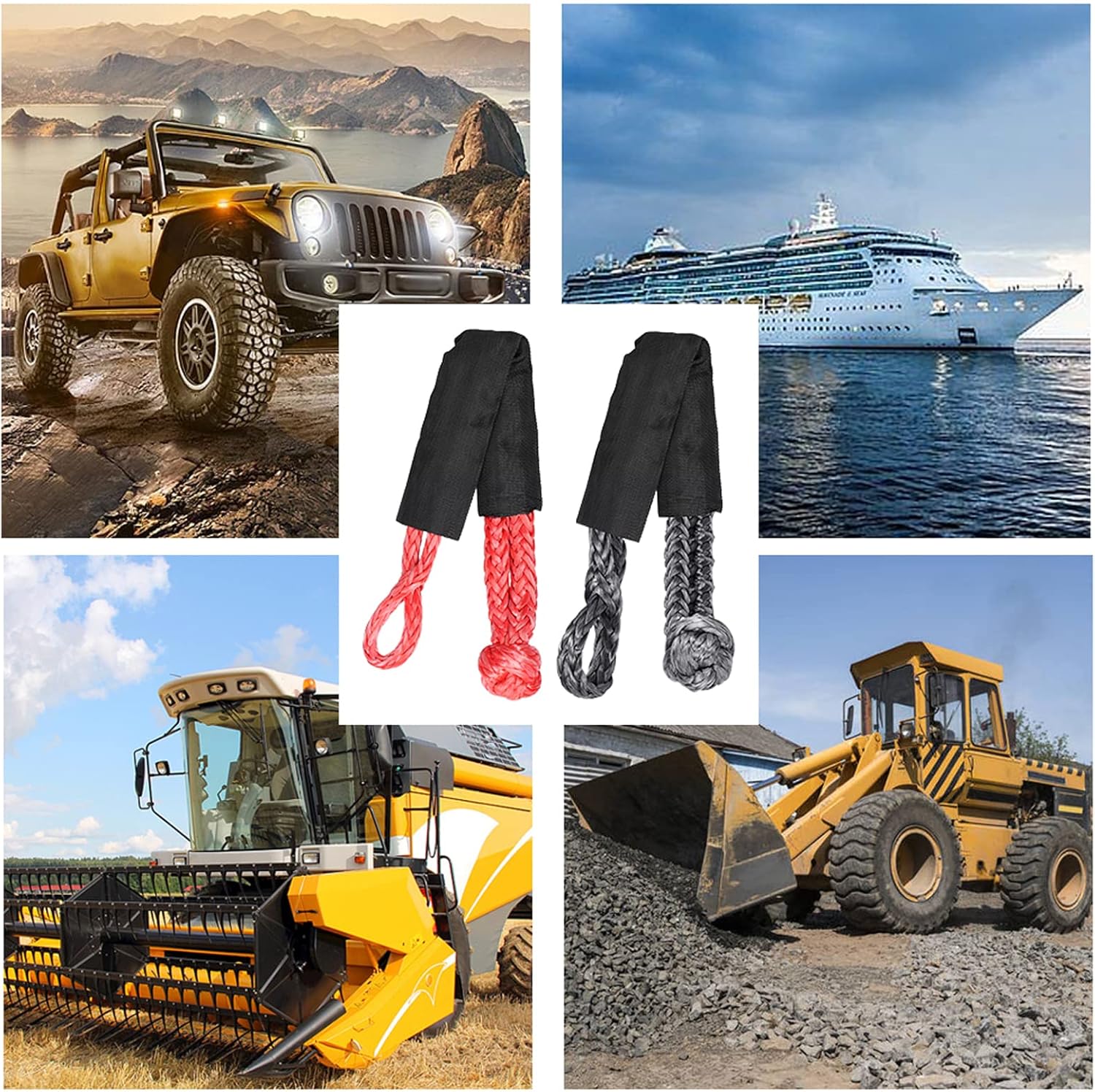 Suitable for most towing applications. Such as: off-road recovery, marine, farming, industrial, mining.Features:Comes with protective sleeve to prevents overheating and slippage.17T/38,000lb breaking strength.Floats on water, no more losing shackles in the water or mire.Flexible, easily wraps around the most difficult pulling points.Integral construction, no pins to fasten.Infinite braided, no loose end gets tighter under weight.Weather proof coating, extended service time under sunlight and corrosion.Specifications:Color: red, black (optional)Quantity: 1pcs, 2pcs (optional)Breaking strength: max. 38,000lb/17tItem length: 550mm / 21.7inItem weight: 139g / 4.9ouncePackage size:1pcs: 300 * 100 * 60mm / 11.8 * 3.9 * 2.4in2pcs: 300 * 170 * 60mm / 11.8 * 6.7 * 2.4inPackage weight:1pcs: 142g / 5.0ounce2pcs: 286g / 10.1ouncePacking List:1pcs set:1 * Towing Rope2pcs set:2 * Towing Rope3.We worldwide by ,HK post ,, ,and so on,according to your choice when placing orders.we are unable to control the ,because it is processed by the Third-party service.4.Service is provided by carrier and excludes weekends and holidays.s may vary,particulary during the holiday season.5. Due to stock status and time differences, we will choose to your item from our first available warehouse for .Item specifics:Origin: Mainland ChinaCertification: NONE