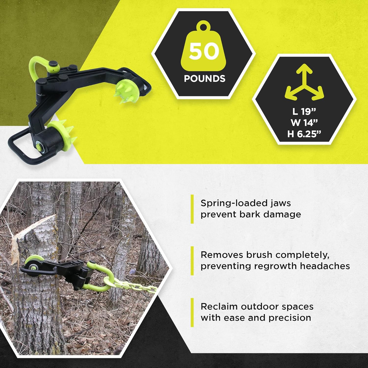 • Grip and Go: Each pad features 5 large gripping teeth and spring-loaded jaws for a secure hold, with 360-degree rotating grip pads to eliminate bark damage