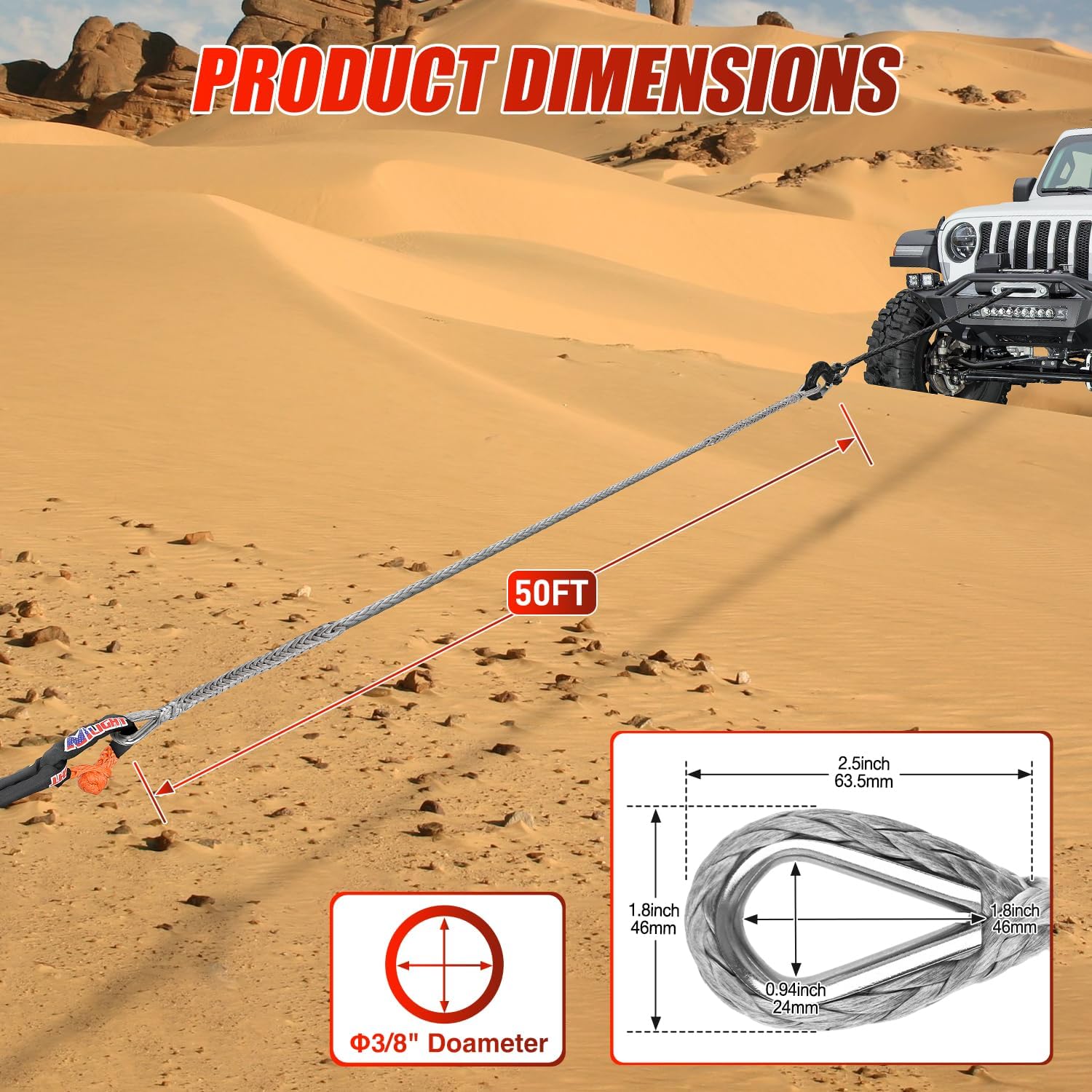 | Included Components | Synthetic Winch Rope Extension 3/8 Inch x 50 Feet 25,000 LBS, Grey |