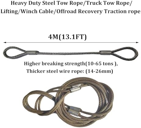Introducing our premium Steel Winch Cable, designed for both reliability and performance in demanding environments. Constructed with high-strength steel wire rope and reinforced with high-pressure crimped aluminum alloy connectors, this winch cable boasts an impressive breaking strength range of 10 to 65 tons. Whether you're involved in off-road rescues, industrial lifting, or port handling, this cable is engineered to exceed the durability of traditional rigging while remaining lighter than standard steel options. The oil-coated surface not only protects against rust but also minimizes friction, ensuring smooth operation under heavy loads. This winch cable is ideal for a variety of scenarios, including towing vehicles, lifting equipment at construction sites, and supporting bridge construction. Its versatility makes it an essential tool for tow trucks, off-road recovery, tower cranes, and more. Available in lengths of 4 meters and thicknesses ranging from 14mm to 26mm, our winch cable is tailored to meet your specific needs. With lifting capacities from 2 to 7.5 tons, this product provides the strength and reliability you can trust, while being lightweight enough for easy handling. Please ensure that you do not overload the cable to maintain its integrity and performance. Each purchase includes a Heavy Duty Offroad Recovery Kit, making it a comprehensive solution for your lifting and towing needs. Invest in our Steel Winch Cable for a dependable and efficient experience in any challenging situation.