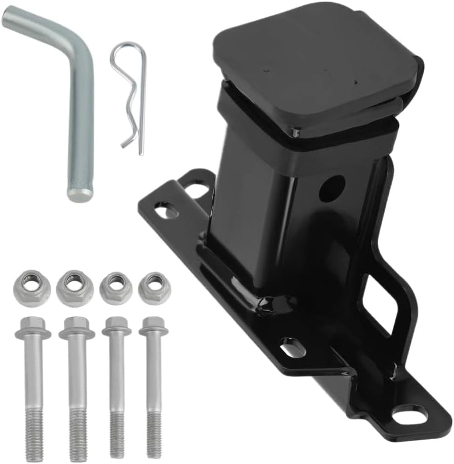 2 inch rear trailer hitch mount plate kit for Teryx KRX 1000 (2020–2023) and Teryx KRX 4 1000 (2023+).Receiver tube size: 2 inches x 2 inches.Material: carbon steel.Finish: powder coated.Mounting style: bolt-on; no drilling required.The hitch is constructed from carbon steel and features laser-cut components with welded joints for structural integrity.The powder coating has been tested for 180 hours in salt spray conditions to resist rust and corrosion.Includes a reinforced port cover to protect the receiver tube.Includes a rubber hitch cover to help prevent mud, rain, snow, and ice from entering the receiver tube.The 2 inch receiver accepts standard accessories including ball mounts, cargo carriers, bike racks, and tow hooks.