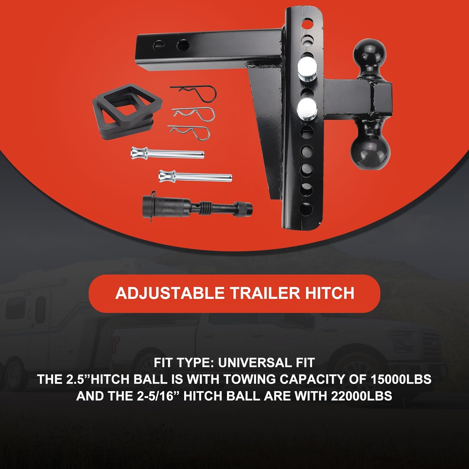 | Included Components | 2.5-Inch Receiver, 8-Inch Drop Adjustable Trailer Hitch |