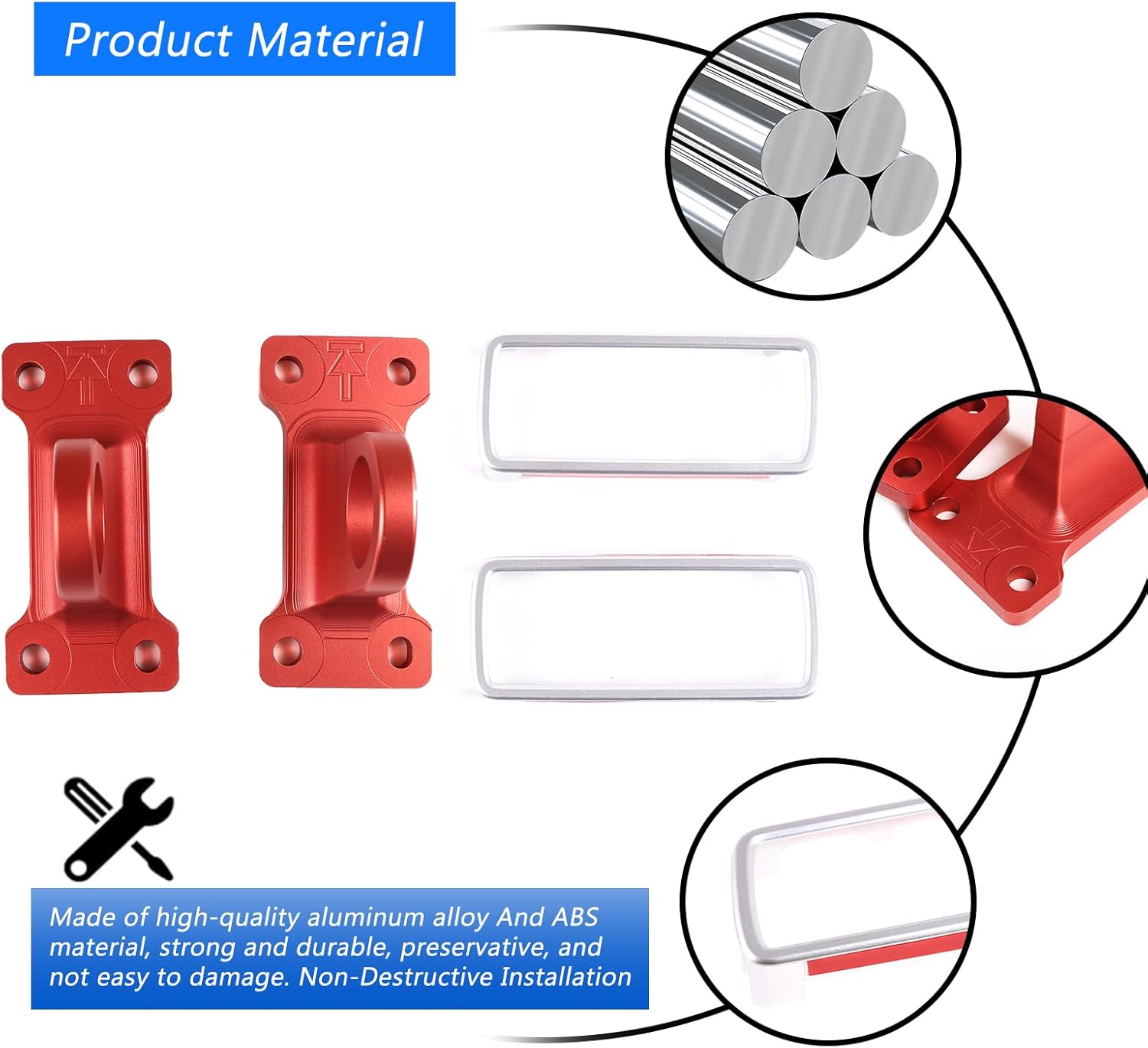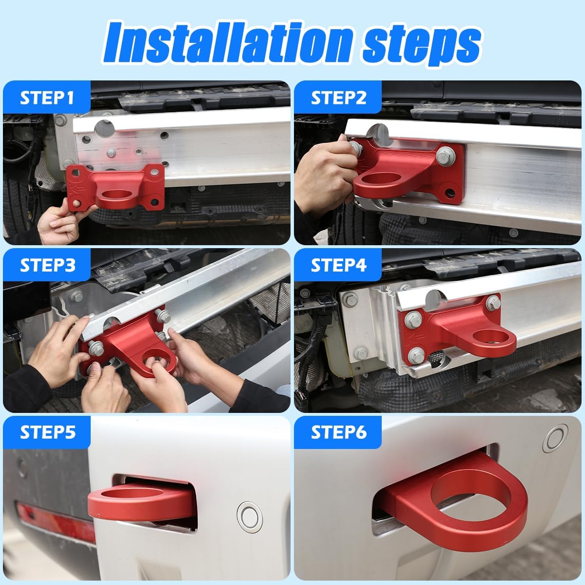 Features - Material: Made of High Quality Aluminum Alloy+ABS - Color:Red+Black/Red+Silver/Black+Black/Black+Silver - Please confirm your car model is as same as the picture before submitting your order Description Item type: Auto Exterior accessories Package include: 4pcs Car Rear Tow Towing Hook&Hook Hole Decorative Frame