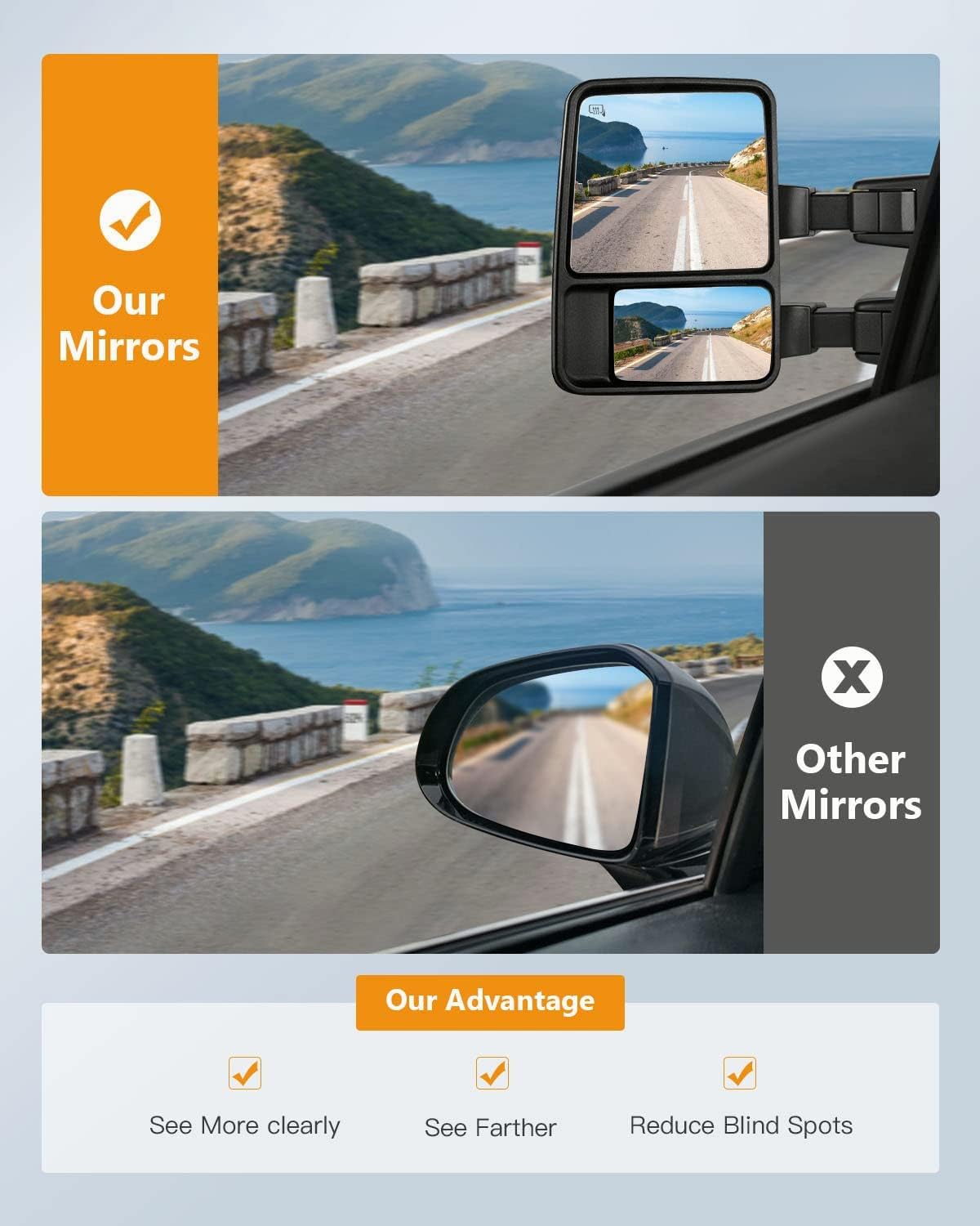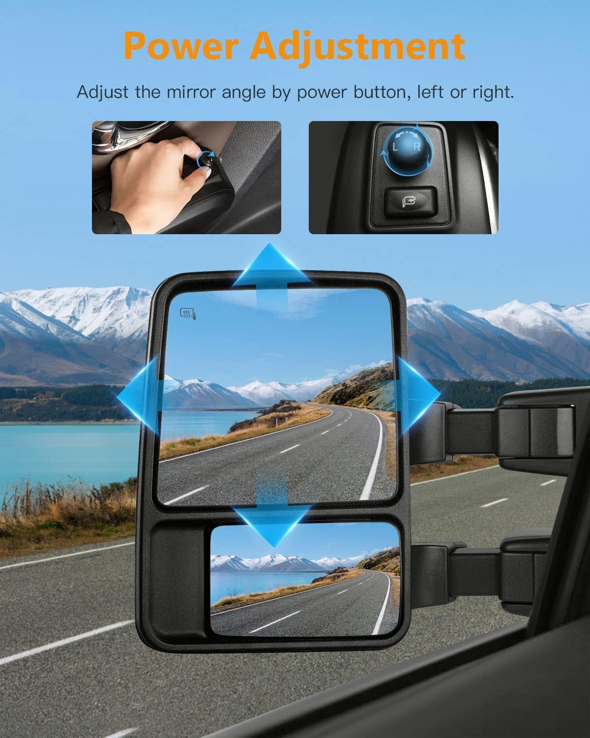 | Other Special Features of the Product | Power Operated Mirrors. Plane Mirror ONLY, Flat Glass+Convex Glass, Heated Defrost Function, Turn Signal Light, Manual Folding+Manual Telescoping, Black Housing |
