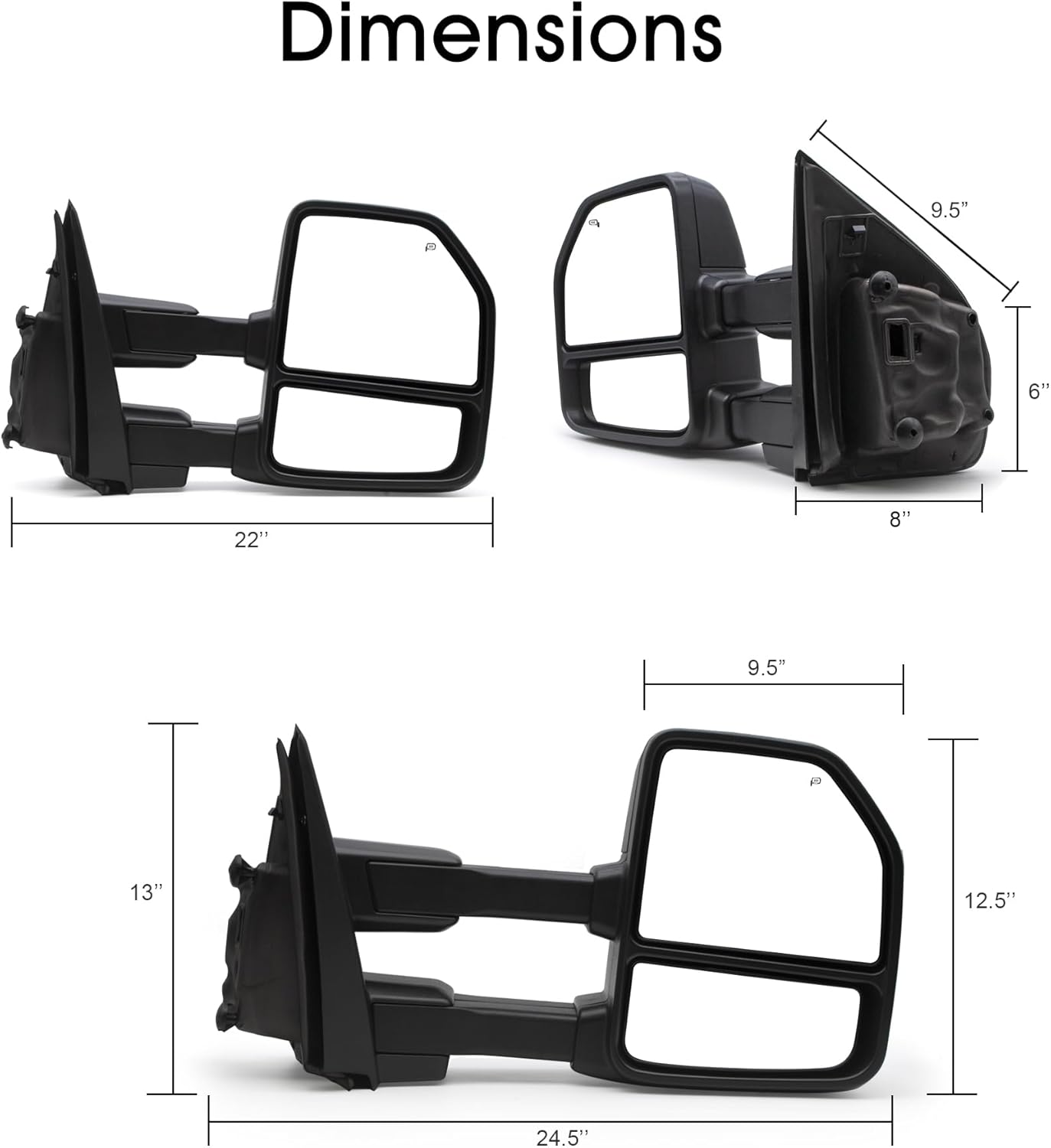 | Size | 15-20 Power Heated Tow Mirrors |