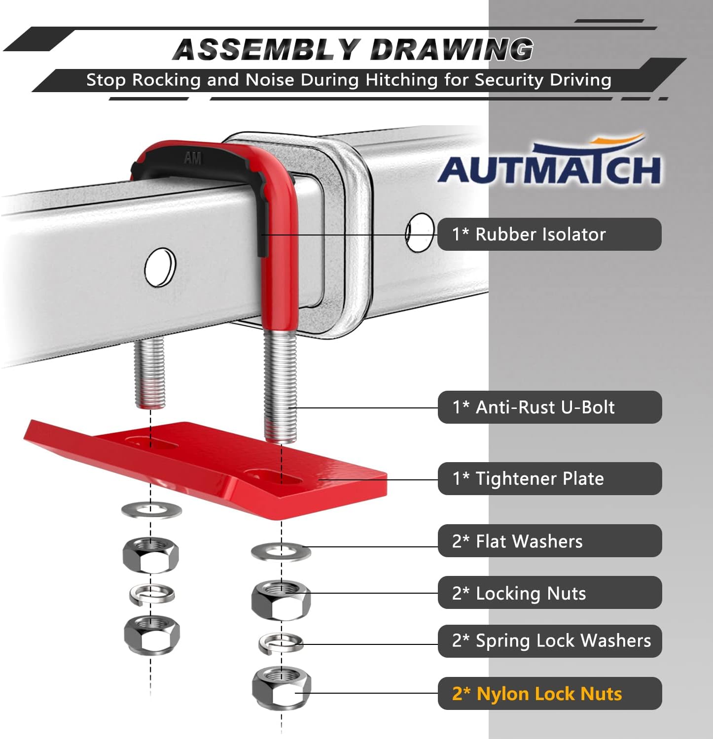 The AUTMATCH Products 3/4" D Ring Shackle and Hitch Tightener Anti-Rattle Clamp Set Provides Superior Towing Power, Better Stability and And a Safer Off-road Experience for Meet Your Vehicle Recovery Needs and Escort for Your Travels. Our Vision Was To Create an Brave Exploration Brand That Aligns with Our Core Beliefs, A Brand You Will Resonate With and Eagerly Join In, Changing The World Around Us By Helping Support a Great Cause.