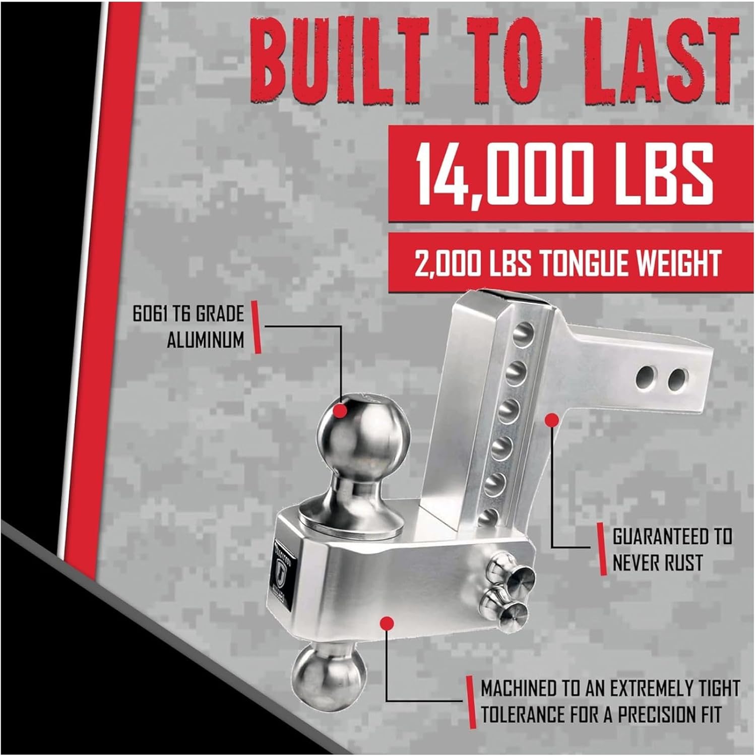 The 2 Inch Aluminum Adjustable Trailer Hitch AL204S is designed for towing trailers up to 14000 lb. It works with utility trailers car haulers RV trailers and work trailers. The hitch provides a stable connection between the tow vehicle and trailer for safe and controlled transport on roads work sites and outdoor locations. This hitch features a dual ball platform compatible with 2 inch and 2-5/16 inch trailer couplers. Operators can switch between different trailers without removing the hitch. The dual ball sizes provide flexibility and help maintain proper alignment for multiple trailer types and towing applications. The 4 inch drop or rise adjustment allows vertical positioning of the hitch to match trailer height. Level positioning improves balance handling and towing stability depending on trailer and vehicle combination. The adjustment system is simple to operate and supports a variety of hauling setups for work or recreational use. Constructed from aluminum, the AL204S hitch is lightweight yet strong for medium duty towing tasks and outdoor exposure. Aluminum provides durability for repeated use and ensures reliable performance in work and recreational applications. The hitch design helps maintain a secure connection between vehicle and trailer while traveling on paved roads gravel surfaces or uneven terrain. Proper installation ensures safe operation and consistent performance during towing. Model AL204S combines lightweight aluminum construction adjustable height and dual ball compatibility in one assembly. It is developed to provide stability strength and versatility for operators handling medium duty trailers or multiple towing configurations. This hitch is ideal for users who need a dependable solution for everyday towing with different trailer types.