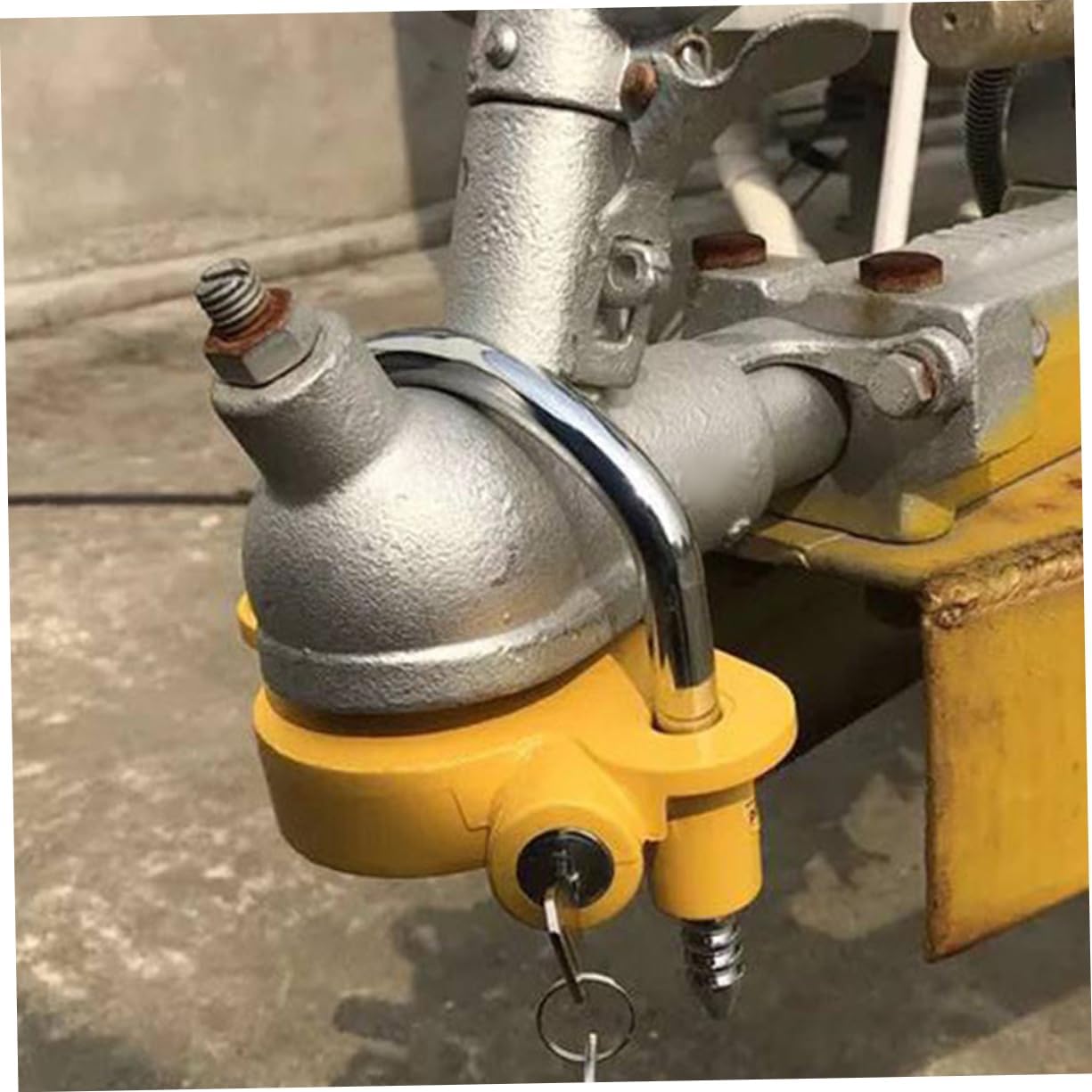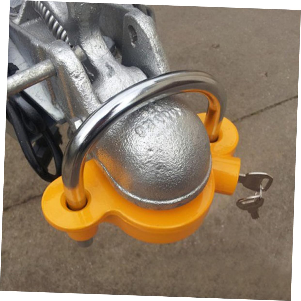 Package List 1 x trailer lock Features -Color:Yellow -Antitheft design: the lock effectively prevents the trailer hitch from being stolen, protecting your property -Material:Aluminum alloy,iron -Size:15.70X14.30X8.00cm/6.17X5.62X3.14in -Durable: manufactured with durable materials, this lock offers durability -Flexible: the lock is suitable for different vehicle hitch connections, making it convenient and practicalGoods InformationConstructed from high-strength aluminum alloy and iron, this automotive trailer hitch lock offers a robust and secure solution for protecting trailer hooks during travel. Its anti-theft design effectively safeguards trailers, boats, and RVs against unauthorized removal. Sized at 15.70X14.30X8.00cm, the yellow lock fits various hitch connections, enhancing convenience across different towing setups. Durable materials ensure long-term use, making it reliable accessory for outdoor enthusiasts and those requiring secure trailer hitch protection. From road trips to boating and camping, this lock integrates with travel trailer accessories and heavy-duty towing equipment to provide peace of mind and practical security wherever you tow From SOLUSTRE was founded to address the need for dependable towing security in outdoor adventures. Valuing strength and versatility, our hitch locks combine durable materials with thoughtful design to protect your trailer connections during travel. Each product reflects our commitment to safety and convenience, supporting your journeys with confidence. Secure your travels with SOLUSTRE, where protection meets peace of mind