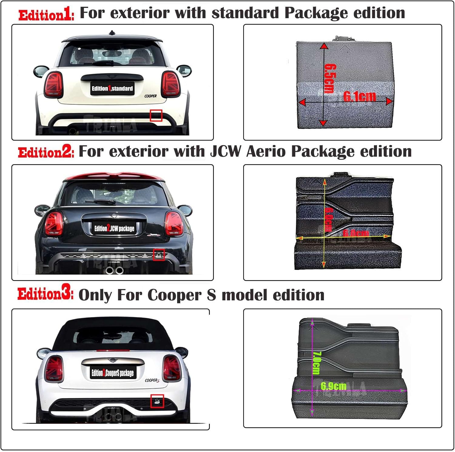 All product photos are captured using our own camera.Please note that the actual color of the product may not be a perfect match to your car's color. The product is painted in primer for selling purposes. It is intended for you to paint it to match your car's color. We appreciate your understanding. Tips: Prior to making a purchase, we recommend carefully examining the shape and position of the product in our provided pictures. Please be aware that Mini attachment parts can be intricate and may vary among models that share the same name. If you are unsure about suitability, kindly provide us with your car's VIN (Vehicle Identification Number) for further assistance. FIT: Edition1 for Mini ONE Cooper F55LCI Hatchback,F56LCI Coupe,F57LCI Cabrio 2021.3-2023 exterior with basic package Edition2 for Mini JCW Cooper F55LCI Hatchback,F56LCI Coupe,F57LCI Cabrio 2021.3-2023 exterior with JCW aeriokit package Edition3 for Mini ONE Cooper S F55LCI Hatchback,F56LCI Coupe,F57LCI Cabrio 2021.3-2023 exterior with cooperS Style Package Warning: Not Fit Mini Countryman F60 or Paceman F61 edition! Warning: Not Fit Mini F54 clubman 6door edition! Warning: Not Fit F55 Hatchback,F56 Coupe,F57 Cabrio before 2021.2 edition! Note: It is important to note that Mini models with the same name often come in various editions,such as Mini ,Clubman,Countryman and Paceman with Hatchback,Coupe,Cabrio or Roadster. These editions may also feature different exterior packages, including base, standard and JCW AeroKit Features,and more. As a result, the exterior parts of these models can differ significantly.