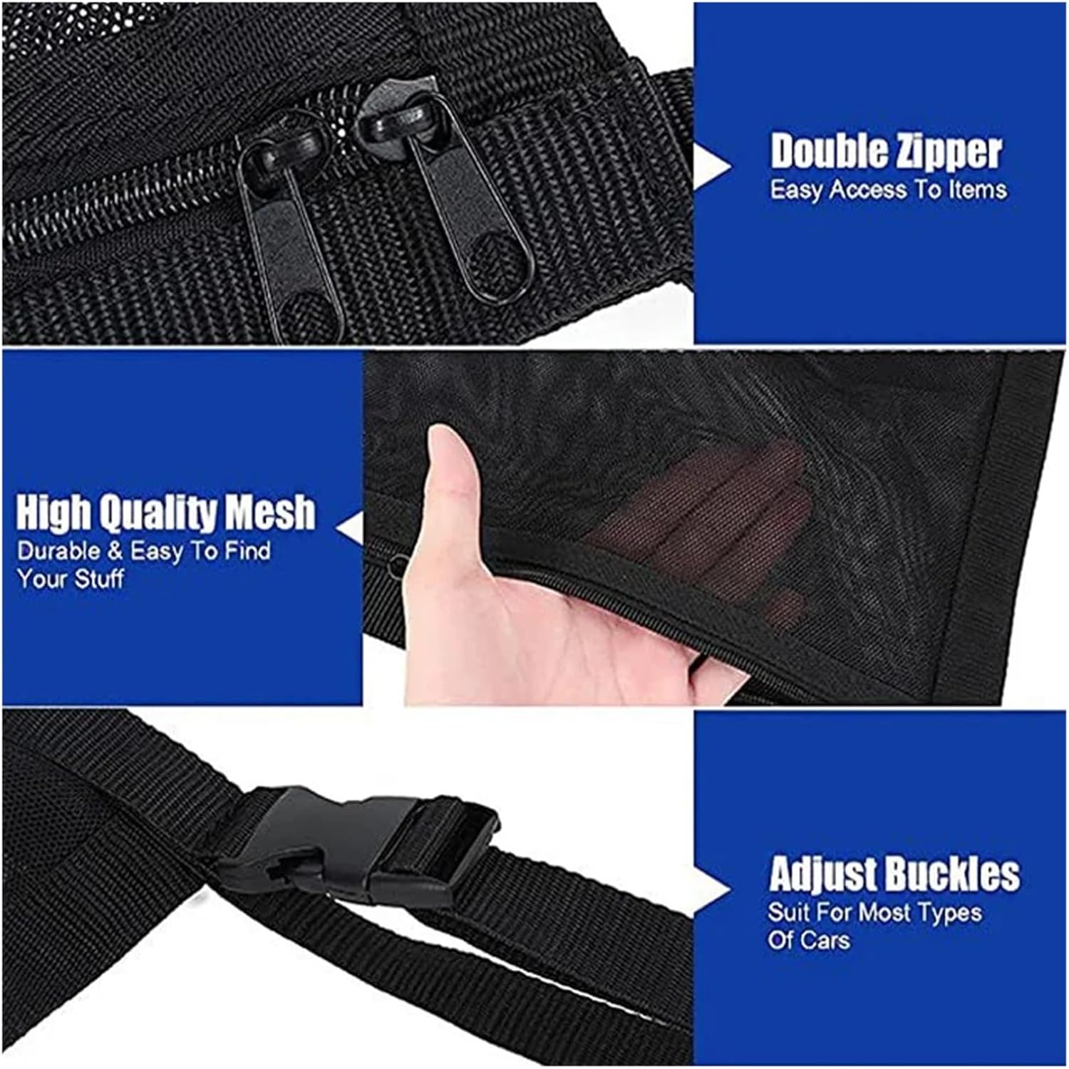 Description: Parts List: 1x Car Roof Storage OrganizerDetailed description: Material: Polyester MeshColor: BlackSize: 80 x 55cmHighlight description: Durable Double-mesh Bag The car storage mesh bag is made of top-quality polyester mesh material, soft and shiny, good air permeability, durable, and not easy to tear. The zipper opens to prevent items from spilling and prevent items from moving during driving.==========Type : Seat Crevice Storage Box / BagOrigin : Mainland ChinaDear customer, Hello Welcome to our small store. We have rich experience in the field of automobile accessories, and we are committed to providing our customers with car modification parts replacement parts and related services.Our products cover a variety of all kinds of car modification parts, including but not limited to headlight lampshade, bumper, wheels, tail wing and so on. We have a wide range of products with novel styles, which can meet the needs of different customers.Our products not only have excellent performance, but also have a long service life, which can provide stable work for your car. We serve every car owner with our heart, and hope to make your car more satisfied with the modification. You can communicate with us if you have any questions, welcome to buy!If you have any questions, please feel free to communicate with us, thank you for your support!