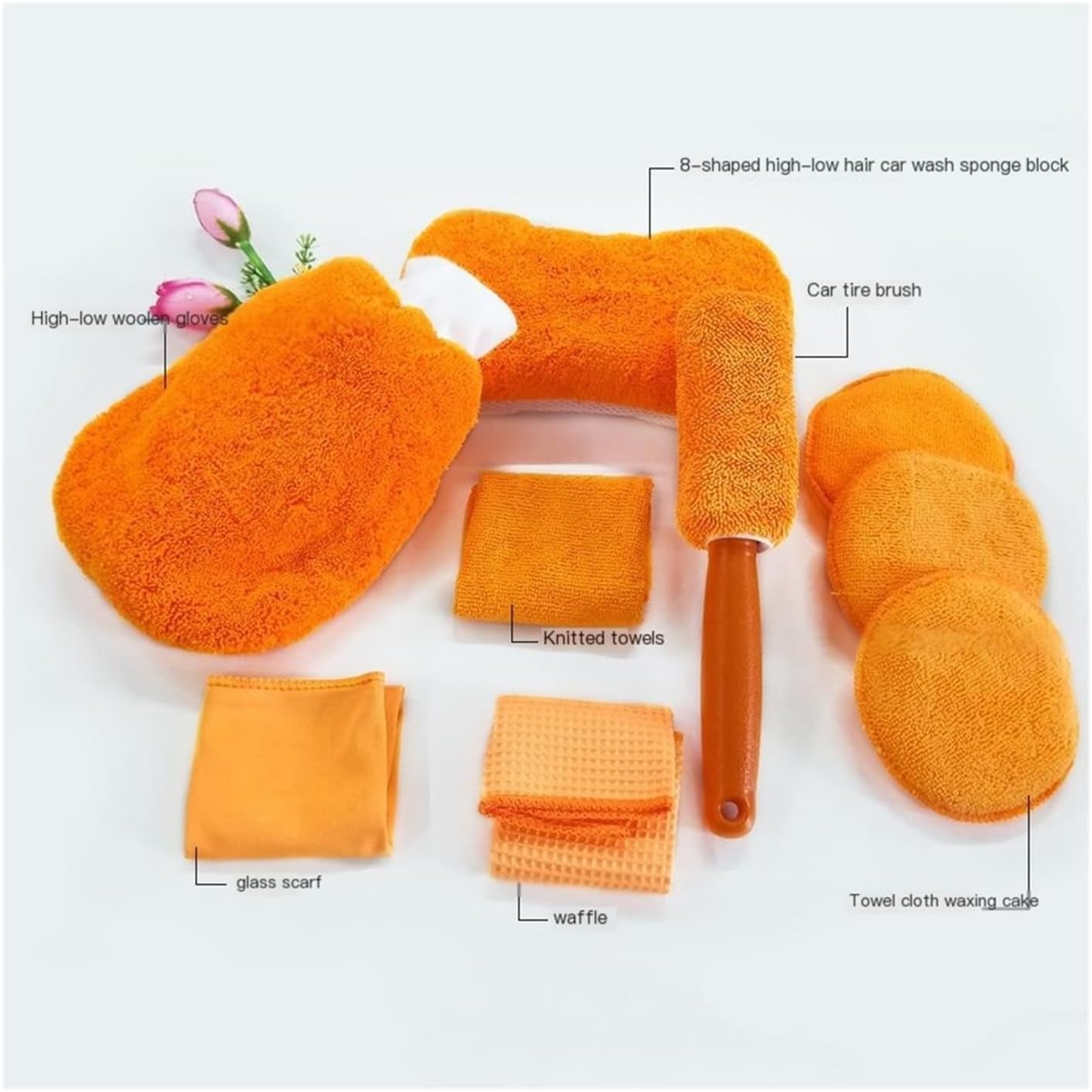 9-piece car wash beauty and cleaning set car wash tools / car wash towel cloth sponge wax cake wheel brushMaterial: MicrofiberOrigin: NingboItem No.: AQ-TZ01Name: Cleaning 9-piece set PVC versionType: 9-piece cleaning set PVC versionUnified conversion unit: set