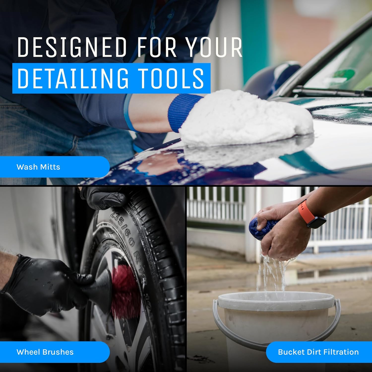 Detail Guardz Scrub Wall Attachment Bundle – Bucket Insert Car Wash Grit Guard System for Wash Mitts, Wheel Brushes & Microfiber, Traps Dirt Below for Cleaner Wash Water - Dirt Lock (White) & Scrub Wall (White)