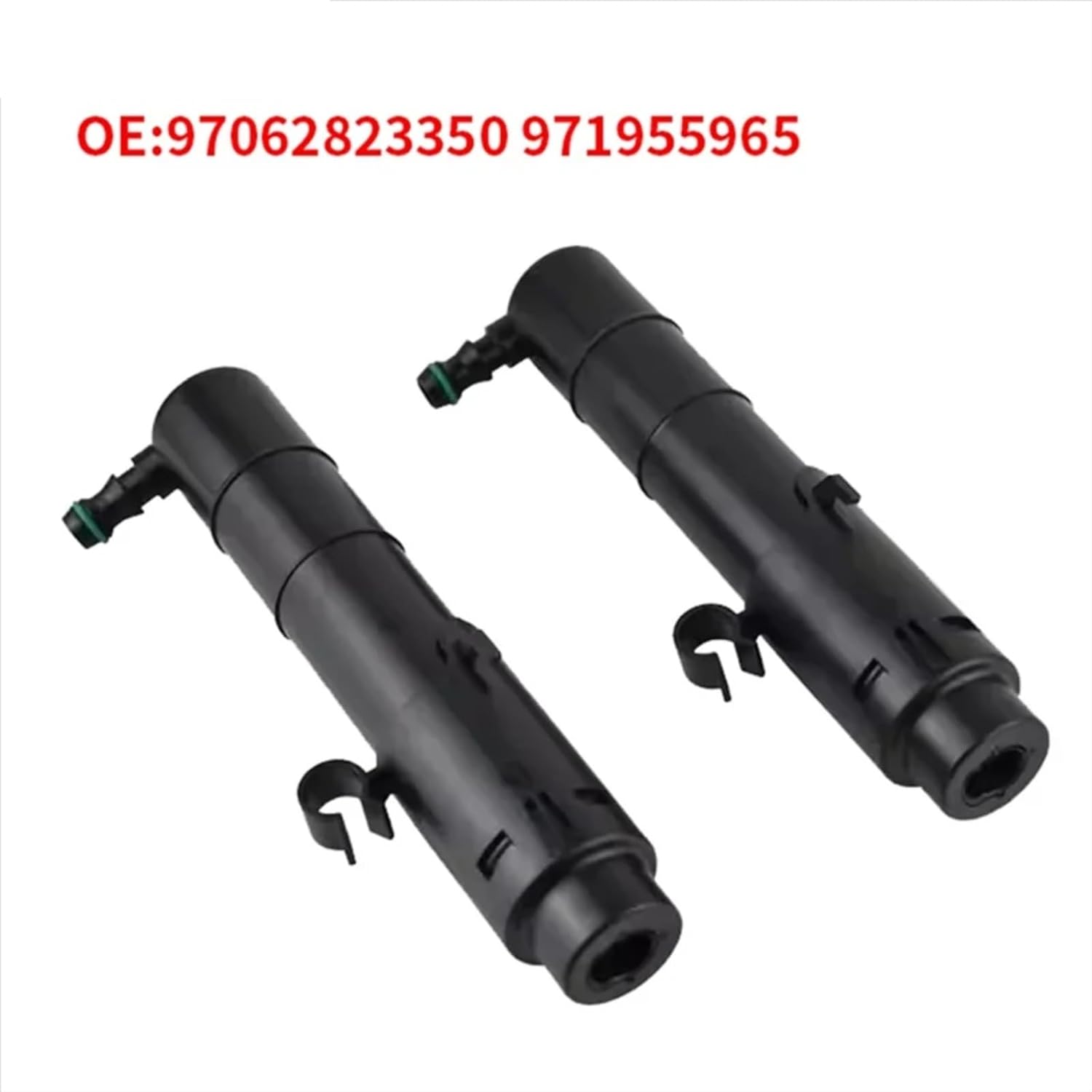 -"Part Name:Headlight washer nozzlePart Number:97062823350 971955965Colour:BlackPackage Contents:1 pair x Headlight washer nozzleFeatures:1.Material: This vehicle washer nozzle is made of a particular material to ensure a reasonable spray pattern and water flow distribution, effectively cleaning the headlights and maintaining clear and bright visibility during nighttime driving;2.Performance: The headlight nozzle prevents dirt, moisture, and debris from entering the washer mechanism, helping to maintain internal components and supporting the long-term reliability of the headlight cleaning function;- Fit For Panamera 970 2014 2015 2016 2017 ;- Performance: Headlight washer nozzles spray water or cleaning fluid from the outside onto the headlight glass under high pressure, preventing the buildup of dirt, frost, and debris. This helps maintain washer functionality and spray patterns, improving vehicle visibility in various conditions and enhancing overall vehicle performance.- Installation: Precisely designed to your vehicle, the washer nozzles are easy to replace without modification. Installation is quick and hassle-free, restoring a clean look to the front bumper and maintaining a neat and stylish appearance.- Function: Provides timely cleaning Fit For headlights.-