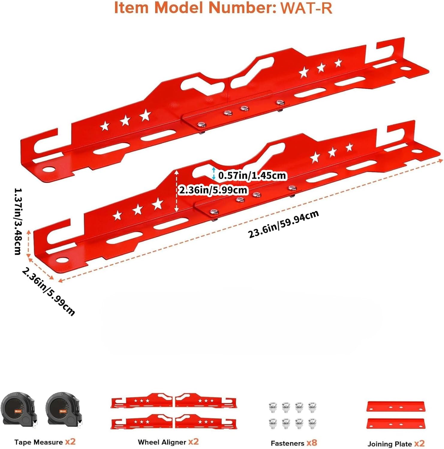 Features: Achieve precise wheel alignment with our heavy duty aluminum toe alignment tool, designs to deformation and rusts for long service accuracy in your vehicle maintenance tasks. This wheel alignment tool features a General design suitable for various Bolts pattern, ensuring it meets the needs of different vehicles within fleets. Ideal for car owners, professional Repair Man , and automotive enthusiasts, this tool provide essential for maintaining best driving stability. for use in homes garages, professional repair shops, or during outdoor emergencies, its user friendly design ensures easy handling and accurate measurements. The tool's convenient hanging holes allow for easy wall mounted storage, providing quick access and efficient organization in any work space . Specifications: Component : aluminum Length: about 59.94cm/23.6inch Width: about 5.99cm/2.36inch Note: Please allow 1 to 3cm error due to manual measurement, please make sure you do not mind before you bid, Due to the differences between different monitors, the picture may not reflect the actual colorful of the item. Package includes: 1 set Wheel Alignment Tool