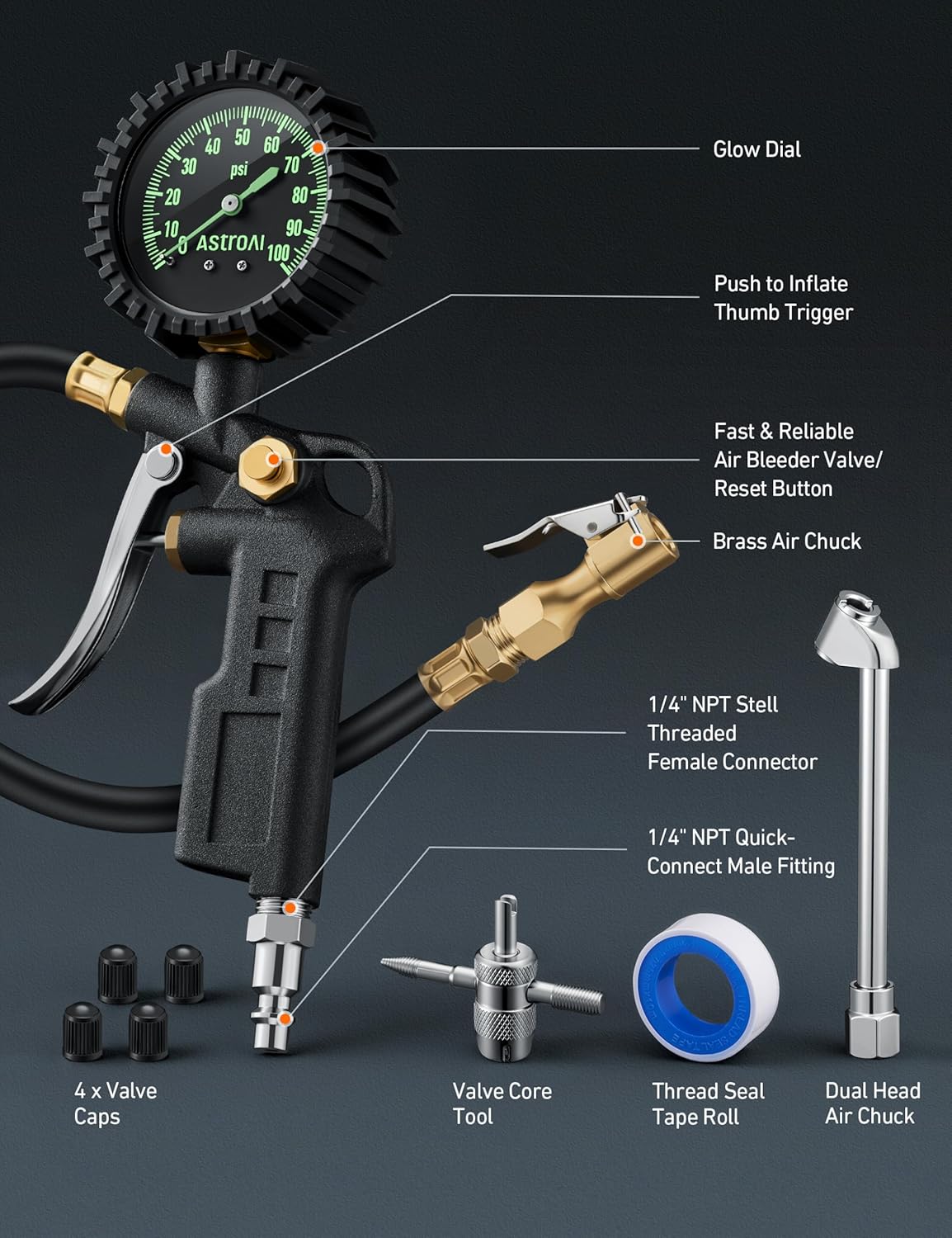 | Included Components | tire pressure gauge with inflator |